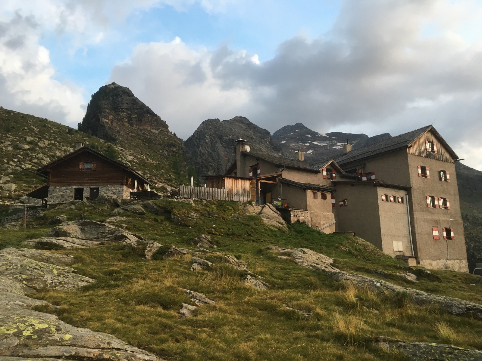 Die urige Kasseler Hütte im Abendlicht: