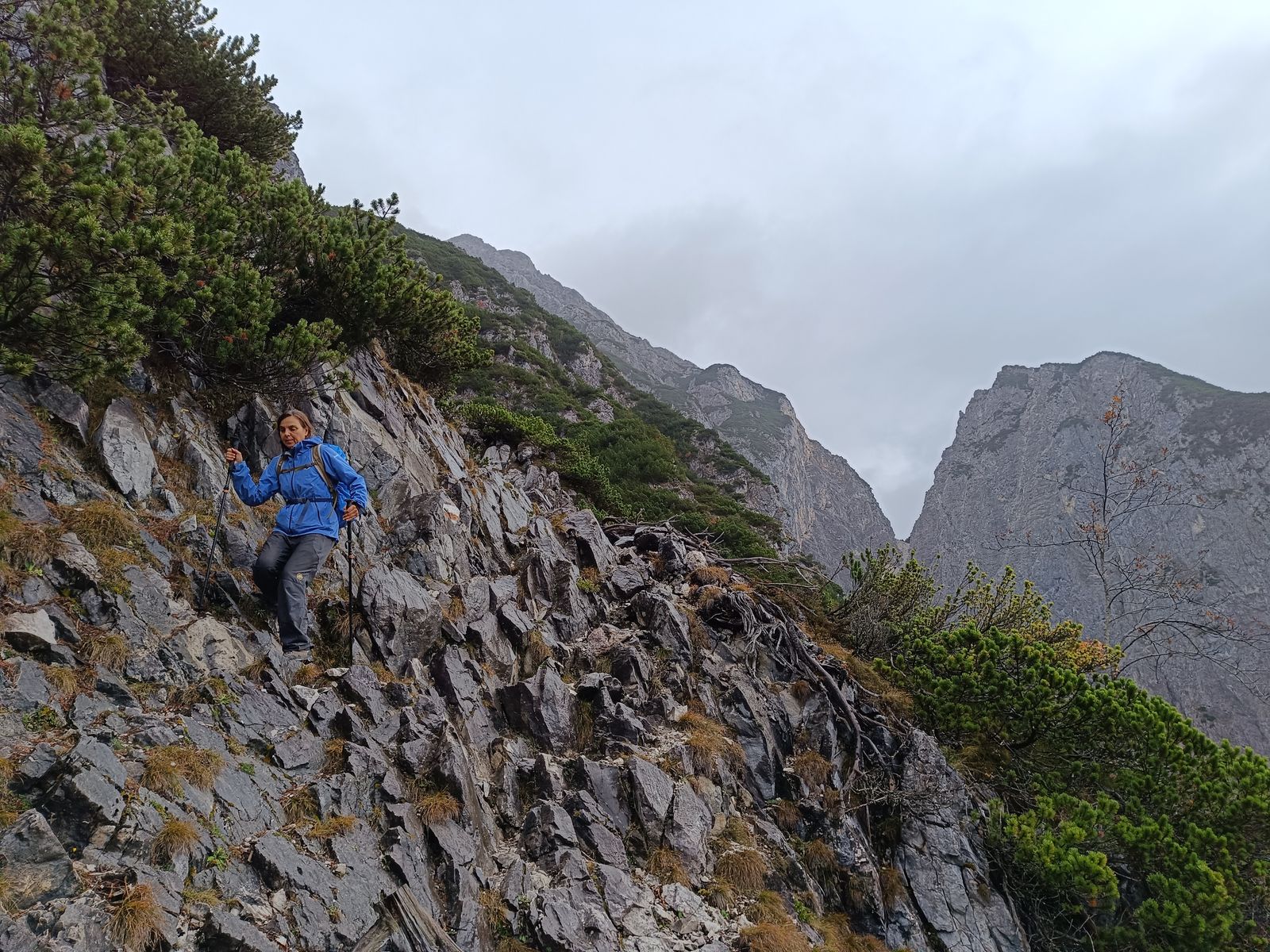 9: Abstieg am ziemlich anspruchsvollen "Normalweg" (Steig 222), der mit T5 zu bewerten ist. Die Gehzeiten auf den Schildern sind hier übrigens sehr "gach" - die meisten Hüttengäste brauchen deutlich länger.