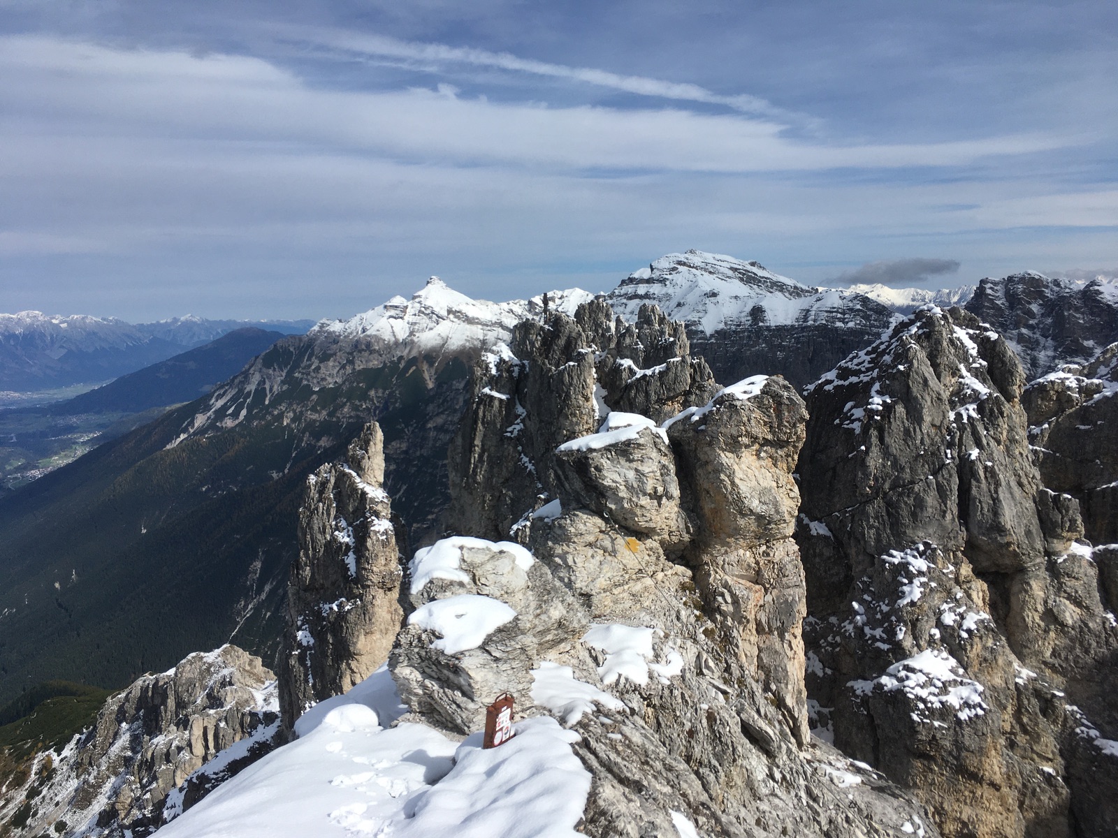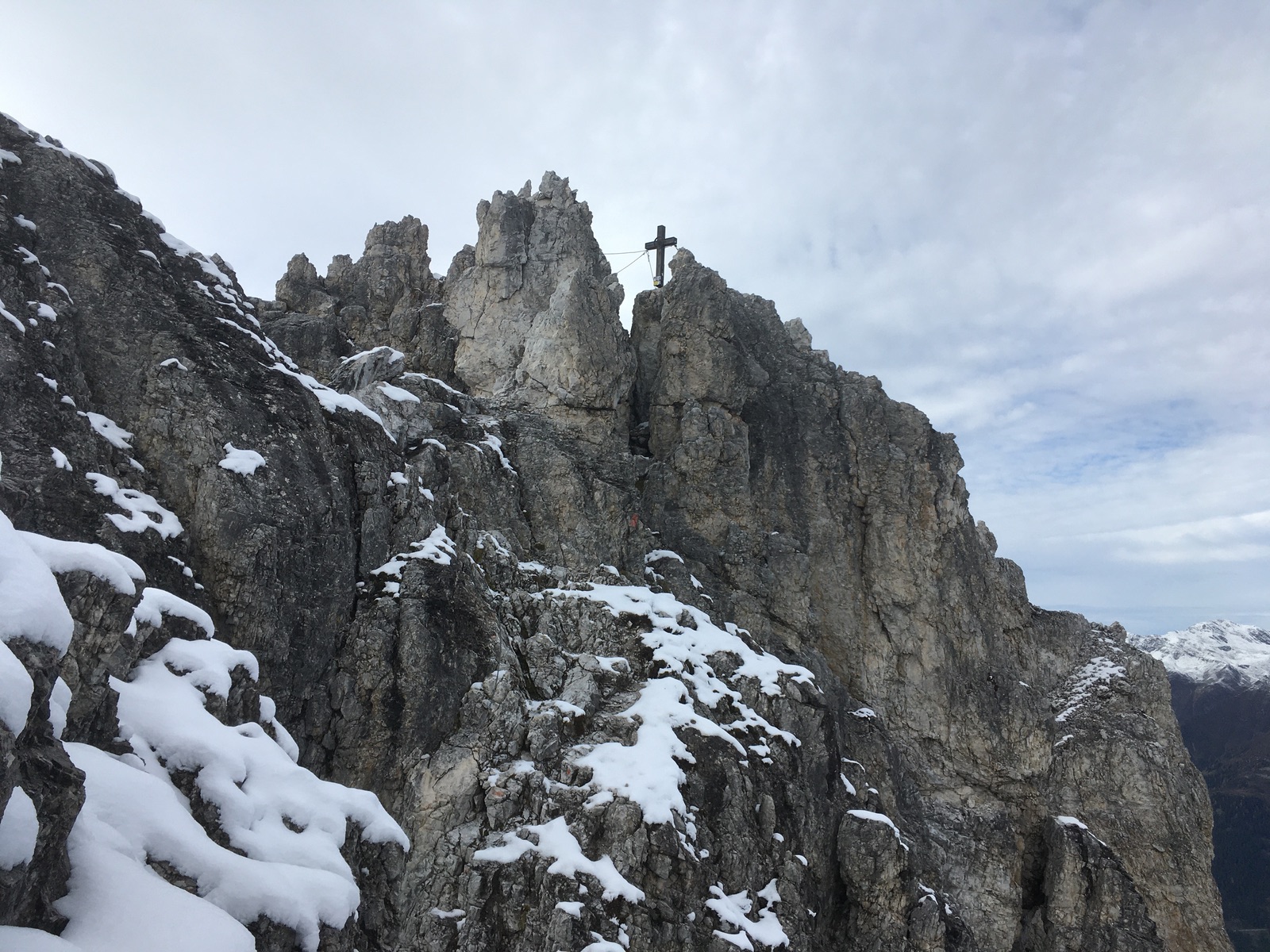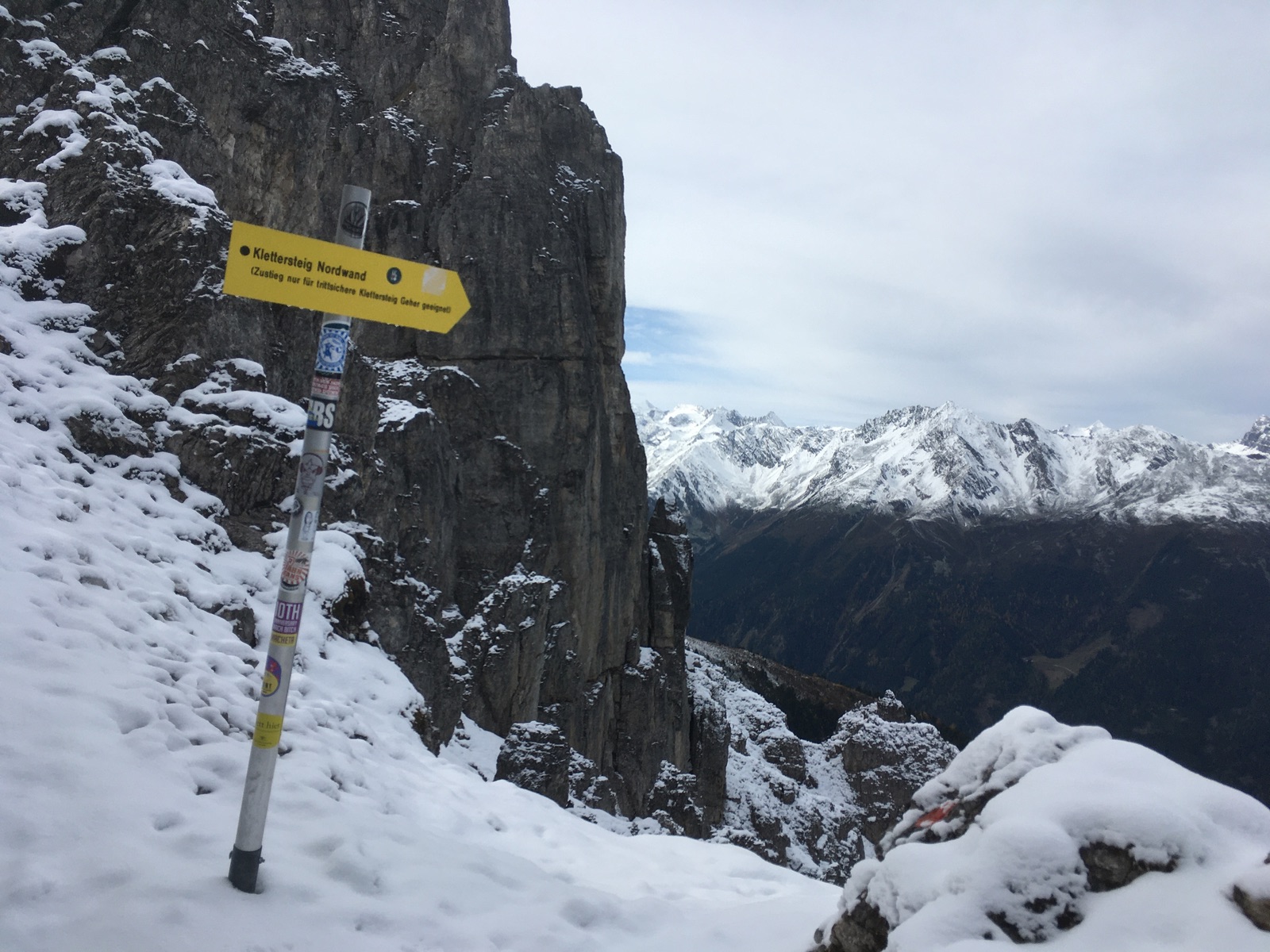 Anschließend ging es über den Elferkofel-Klettersteig zum höchsten Punkt des Elfer-Massivs und dann weiter dem Klettersteig folgend zum Zwölfernieder. Von diesem im Schnee nach Norden und durch sehr schönes Gelände zur Auten-Alm und hinab nach Neustift.