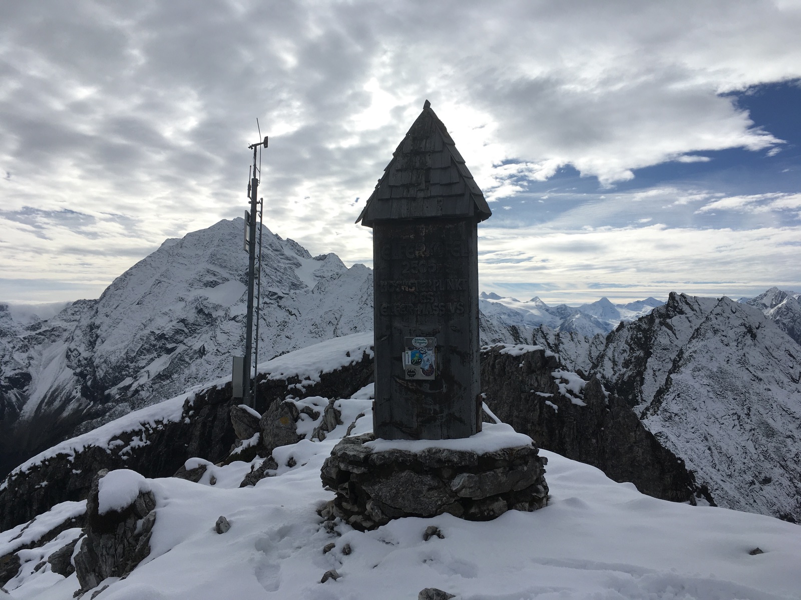 Am Samstag habe ich den letzten der mir noch fehlenden "Stubai Seven Summits" besteigen können, den Elfer. Aufgrund späten Starts gönnte ich mir die Auffahrt mit der Seilbahn (15 Euro für AV-Mitglieder) und stieg dann vorbei an der noch geöffneten Elferhütte zügig hoch zum neuen Einstieg in den nordseitigen Zustieg zum eigentlichen Klettersteig. Der Weg ist bis dort identisch mit dem Wanderweg zum Elfer. Hintergrund für die Verlegung des Klettersteig-Zustiegs dürfte die Verringerung der Steinschlaggefahr sein. Dadurch muss man allerdings vom Wanderweg erst einmal wieder absteigen, um dann unter der Elfer-Nordwand durchzuqueren. Zu meiner Überraschung war noch niemand unterwegs gewesen - dadurch alles zu spuren. Grödel und Gamaschen waren hier sehr hilfreich. Zum Einsteig in den eigentlichen Klettersteig muss man einige Meter kraxeln (ca. UIAA I), mit Schnee gar nicht so einfach und die richtige Route wollte erst einmal gefunden werden. Auch im Klettersteig selber gibt es ungesicherte Kraxelpassagen (I-II). Zum Teil waren die Felsen noch nass und das Drahtseil an einigen Stellen vereist, dadurch höhere Anforderungen als bei trockenen Verhältnissen. Den kurzen "Neben-Klettersteig" zum Westlichen Elferturm habe ich natürlich auch noch mitgenommen, bevor es zum Gipfelkreuz auf dem Östlichen Elferturm ging - da trifft man kurz vorher auf den Wanderweg von der Elferhütte. Die letzten Meter hoch zum Kreuz muss man dennoch Hände anlegen - eine Schweizer Familie vor mir hat hier gesichert, was bei Schnee und Eis durchaus nachvollziehbar ist.
