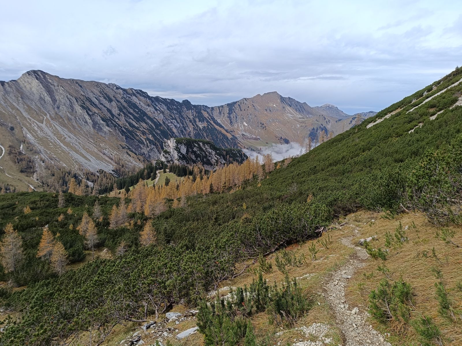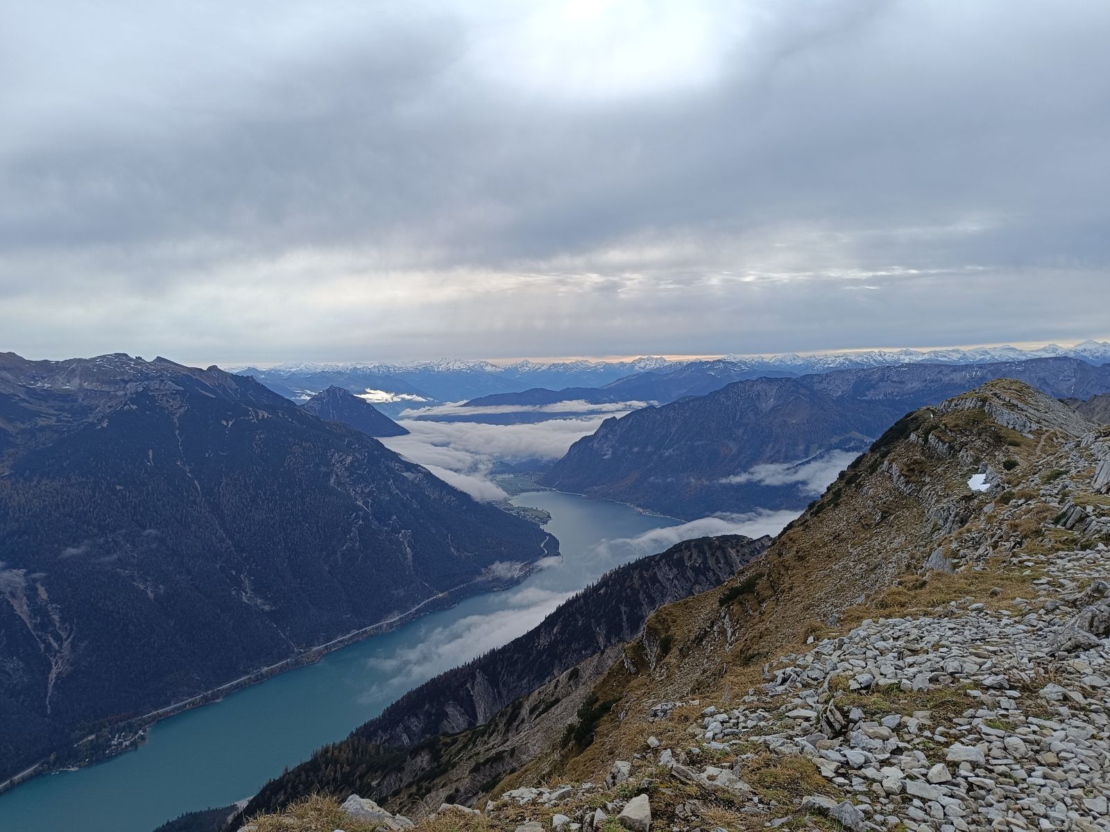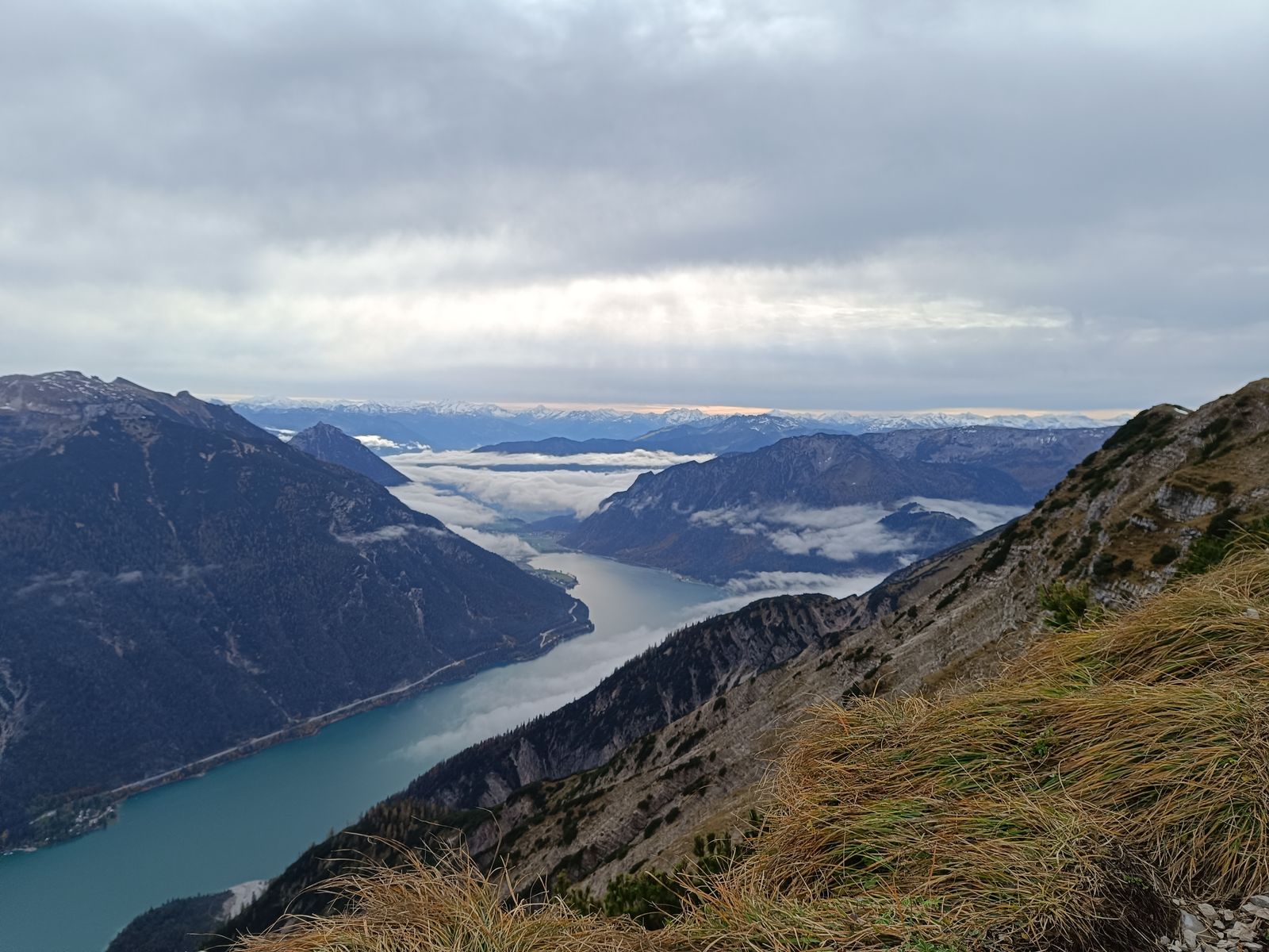 Heute habe ich mir den Klassiker hoch über dem Achensee gegönnt - wie immer eine wunderschöne Tour, auch wenn wegen hoher Schichtbewölkung das letzte Quäntchen gefehlt hat. Die Lärchen würden bei strahlendem Sonnenschein einfach noch schöner leuchten...