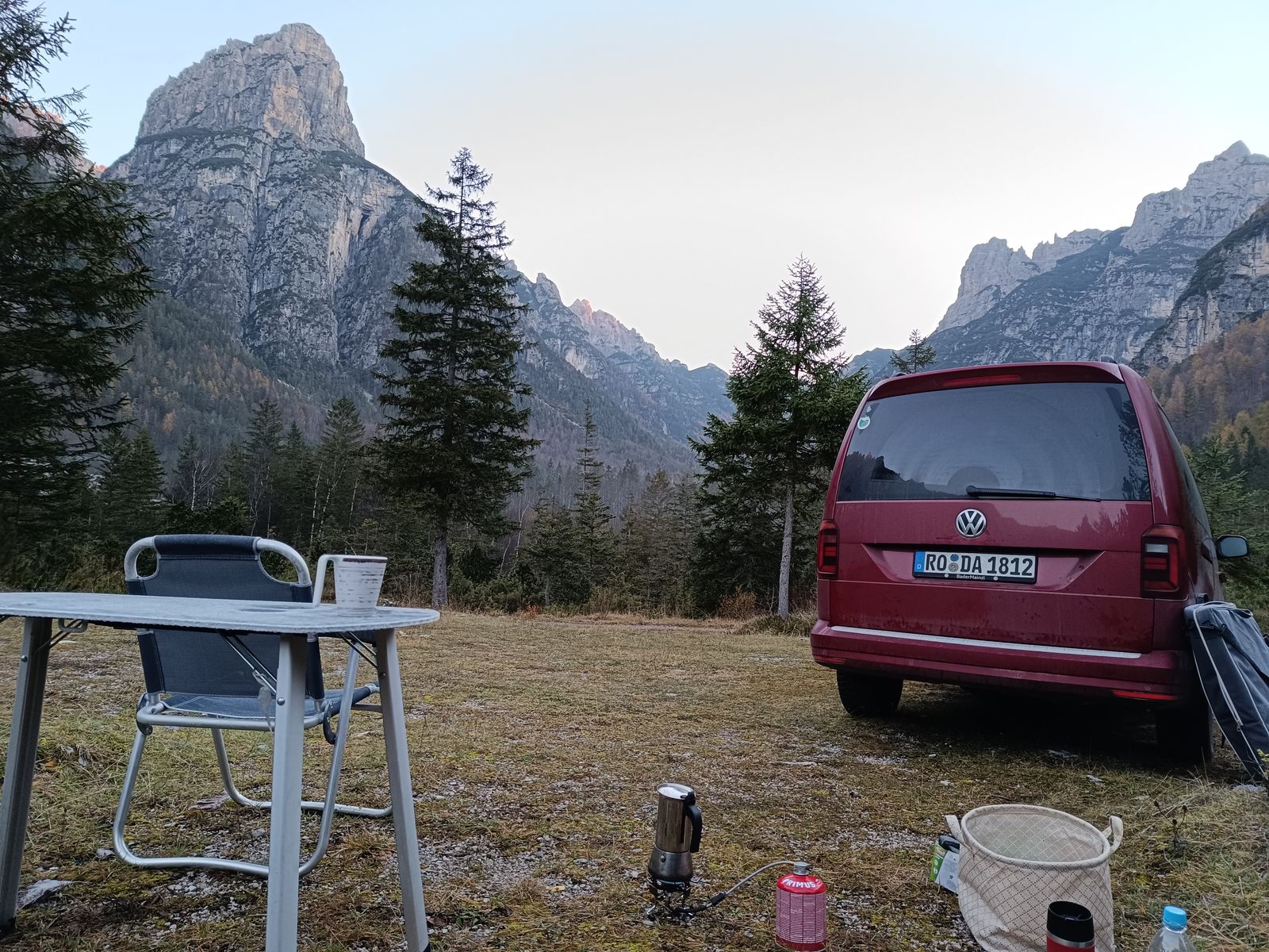 7: Unser Übernachtungsplatz; der Kaffee ist gerade aufgesetzt.