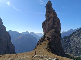 Standardroute zum Wahrzeichen der Dolomiti Friulane. Auf jeden Fall sollte man ob der Tief- und Ausblicke noch die 250 Hm zur Forcella Montanaia anhängen! 1200 Hm, 8 km, 5-6 Stunden.