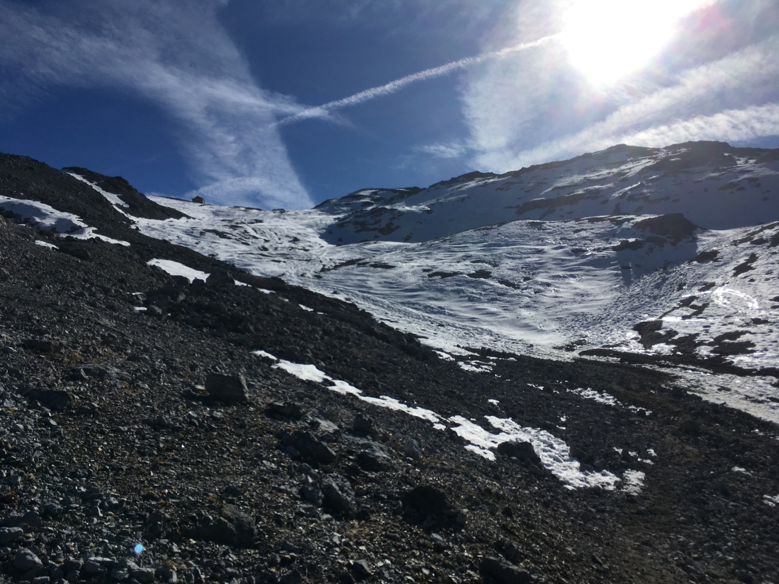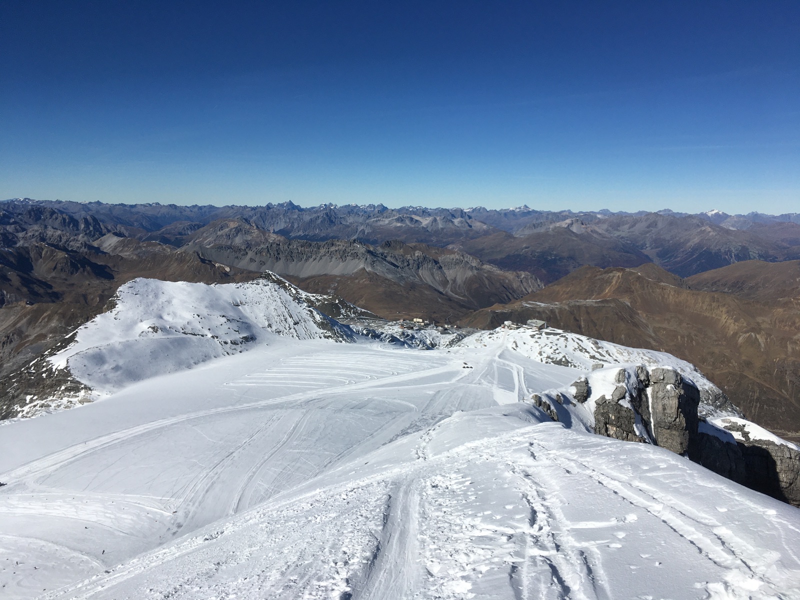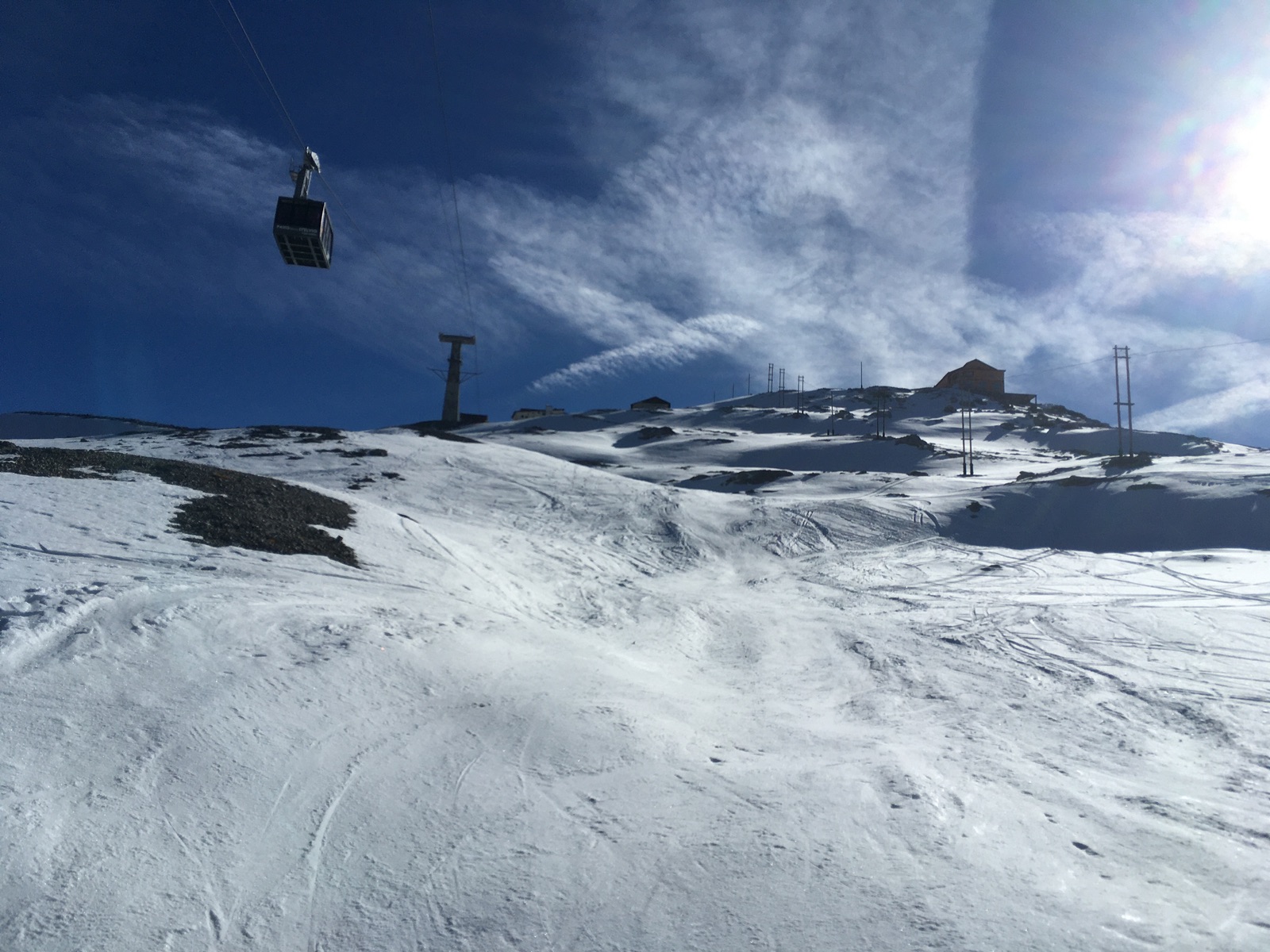 Pünktlich zum 1.11. konnte am Stilfser Joch der Skitourenwinter eingeleitet werden. Und so bestieg ich an Allerheiligen und am Samstag zahlreiche der Skitourengipfel rund um das Skigebiet Stilfser Joch. Vom Parkplatz am Joch mussten die Skier einige Meter getragen werden, dann geht es auf letzten, zum Teil sehr harten / eisigen Schneeresten hoch. Ab ca. 3.000 m liegt deutlich mehr Schnee. Ab dem Trincerone (Mittelstation) war das Skigebiet auch in Betrieb und v.a. von Trainingsgruppen in Beschlag genommen. Auf den Pisten wie zu dieser Jahreszeit und nach langer Warmphase üblich sehr harte / eisige Verhältnisse. Die wenigen sonnseitigen Passagen (v.a. Monte Livrio) waren am Nachmittag schön aufgefirnt. Allerdings gibt es im Gebiet kaum sonnseitige Hänge und wenn, dann haben die meistens nicht mehr viel Schnee. Die Naglerspitze-/Nasenspitze-Flanke hinab ins Skigebiet war auch eher hart / bruchharschig und zudem etwas steinig. Die Steine abseits der geöffneten Pisten machen auch die Skiwahl anspruchsvoll: Ich habe mich für die alten Tourenski entschieden - mit guten Kanten wäre es natürlich auf den eisigen Pisten angenehmer.