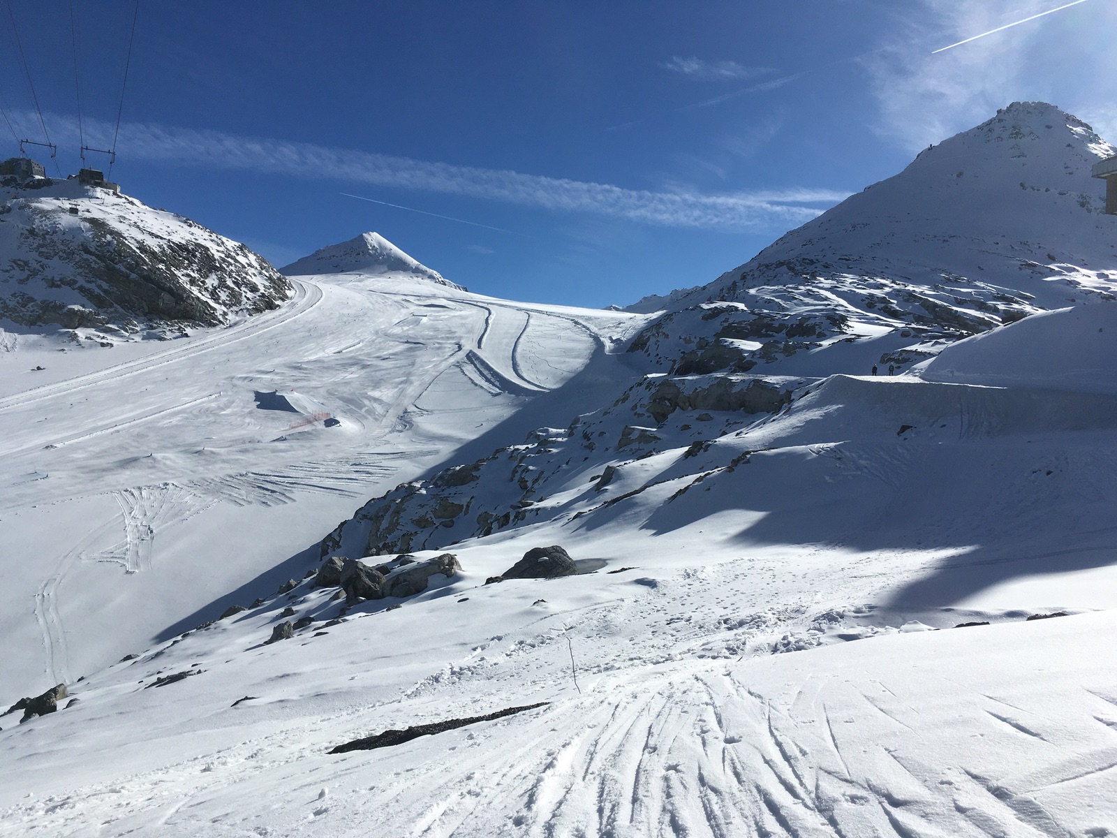 Zu den "echten" Skitourenzielen wie Tuckettspitze gab es auch einzelne Spuren. Auch hier wäre ich aber um diese Jahreszeit wegen Gletscherspalten vorsichtig - man sah vereinzelt welche. Solche Touren sind m.E. eher was für die Zeit Ende Mai / Anfang Juni, wenn der Pass wieder nach der Wintersperre geöffnet ist und alles normalerweise sehr gut eingeschneit ist.
