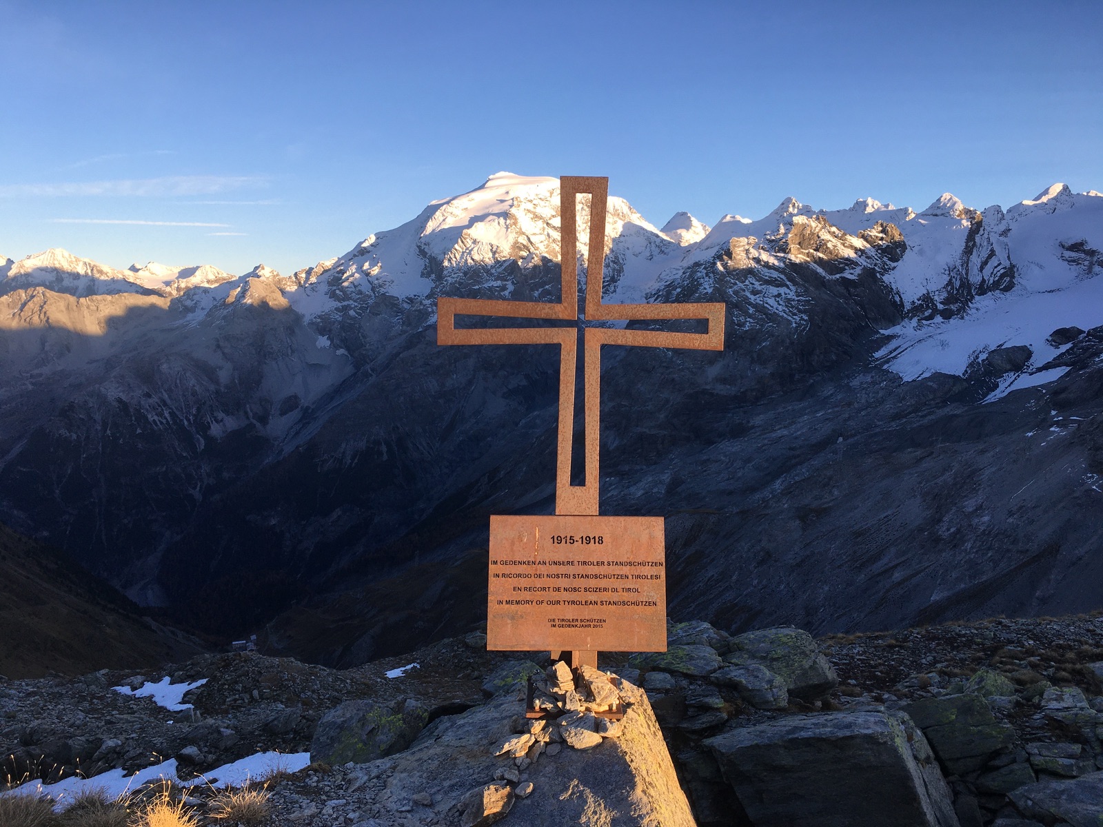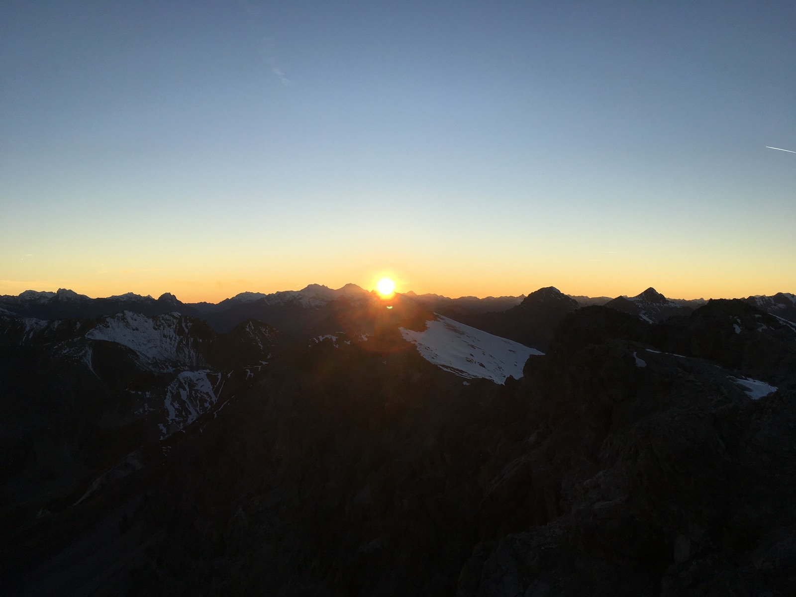 Sonnenuntergang hinter dem Piz Morteratsch gesehen vom Piz Umbrail: