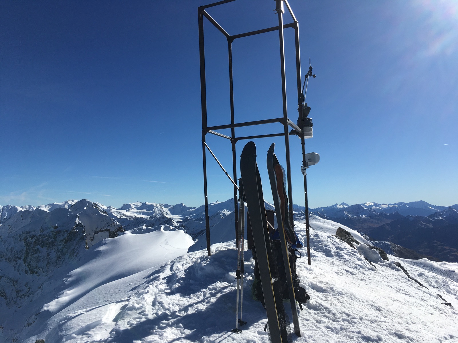 Der in Skitourengeherkreisen wohl beliebteste Käfig - Gipfelmarkierung der Geisterspitze: