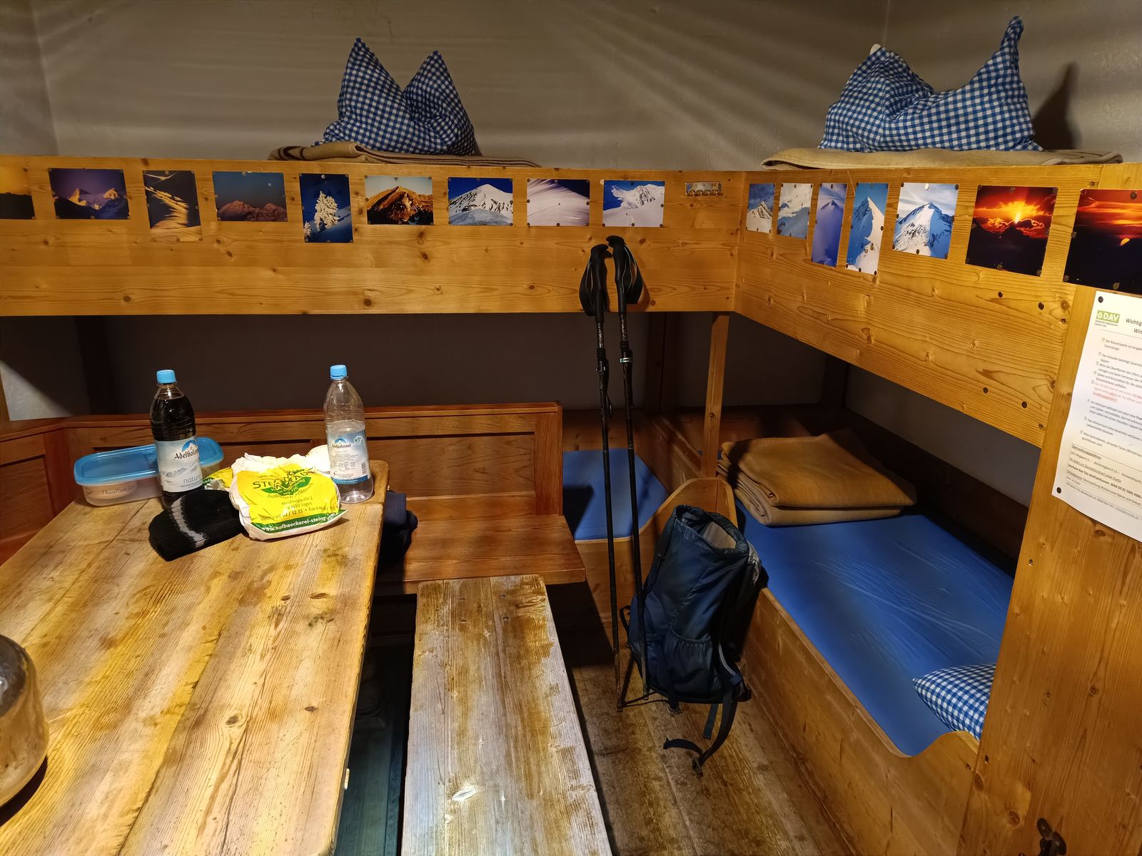 Hinweis: Die Quelle bei der Tölzer Hütte schüttet momentan nur sehr spärlich. Unter 0,5 Liter in der Minute. Also vielleicht die Trinkwasser-Vorräte beizeiten auffüllen, was je nach gewählter Route ja an einigen Bächen möglich ist. Ich hab auch den großen Teekessel voll gemacht, damit die nächsten Besucher Wasser vorfinden. Abgekocht ist es ebenfalls, obwohl das eigentlich nicht nötig ist.