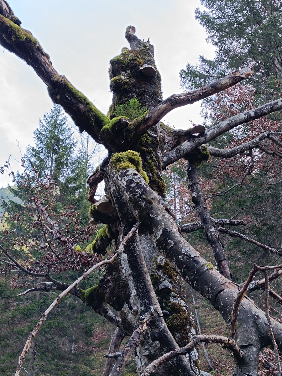 9: Da wächst auf der alten Buche doch tatsächlich eine Fichte.
