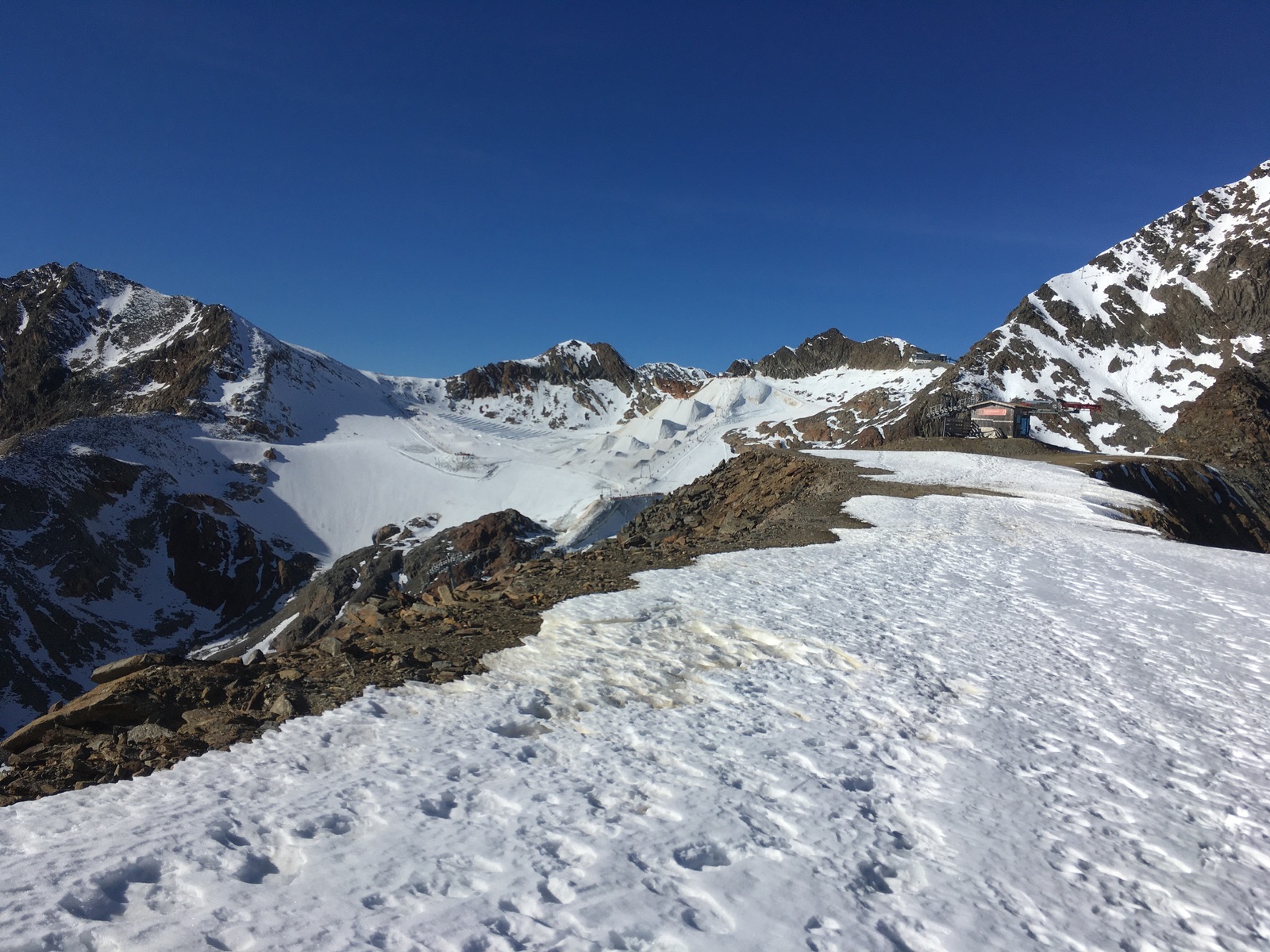 Der Snowpark auf dem Gaiskarferner mit dem Schussgrubenkogel dahinter: