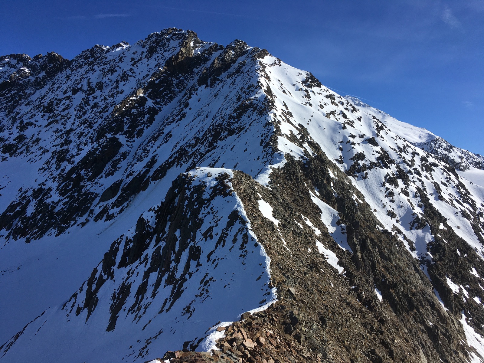 Diesen Kamm / Grat hoch zum Aperer Pfaff geht es jetzt mit Steigeisen hoch: