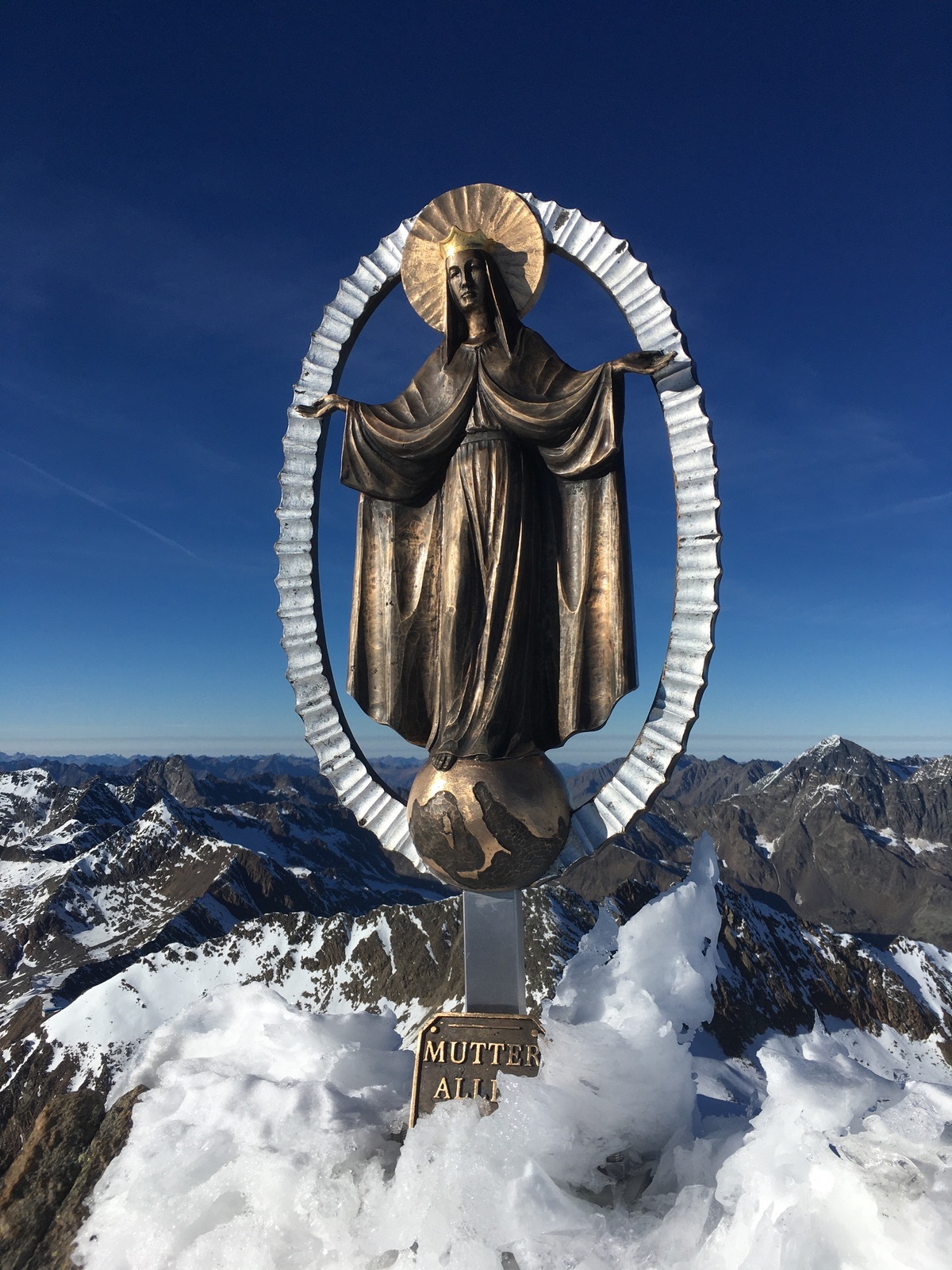 Die Gipfelmadonna - viel Platz ist nicht auf dem sehr abschüssigen Gipfel: