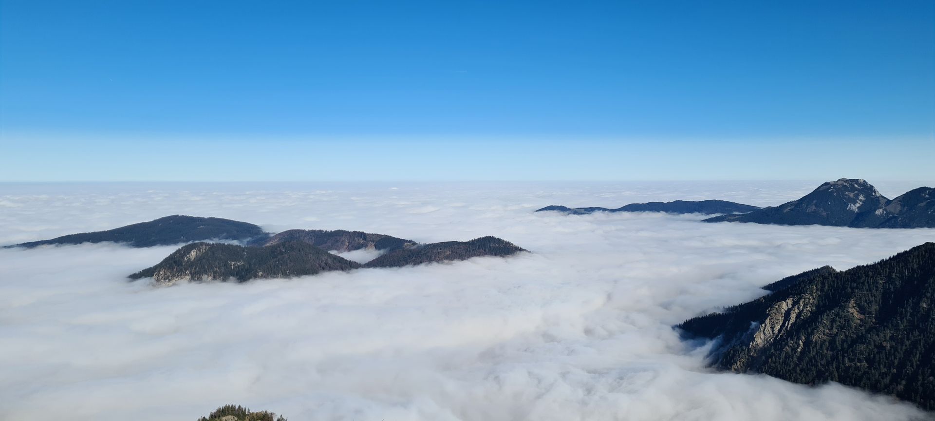 Beste Verhältnisse, alles trocken. 1 Grad am Ausgangspunkt - so kalt war es auch bei meiner Rückkehr. Nebelgrenze zwischen 1100 und 1200 m. Später recht unterschiedlich: Am frühen Nachmittag hat es am Sattel schon wieder zugezogen, wogegen es zwischen Leitzachtal und Irschenberg sehr sonnig war. Gegen Mittag hat auch ein sehr lebhafter Wind eingesetzt, der wohl ein Vorzeichen des Wetterumschwungs ist.