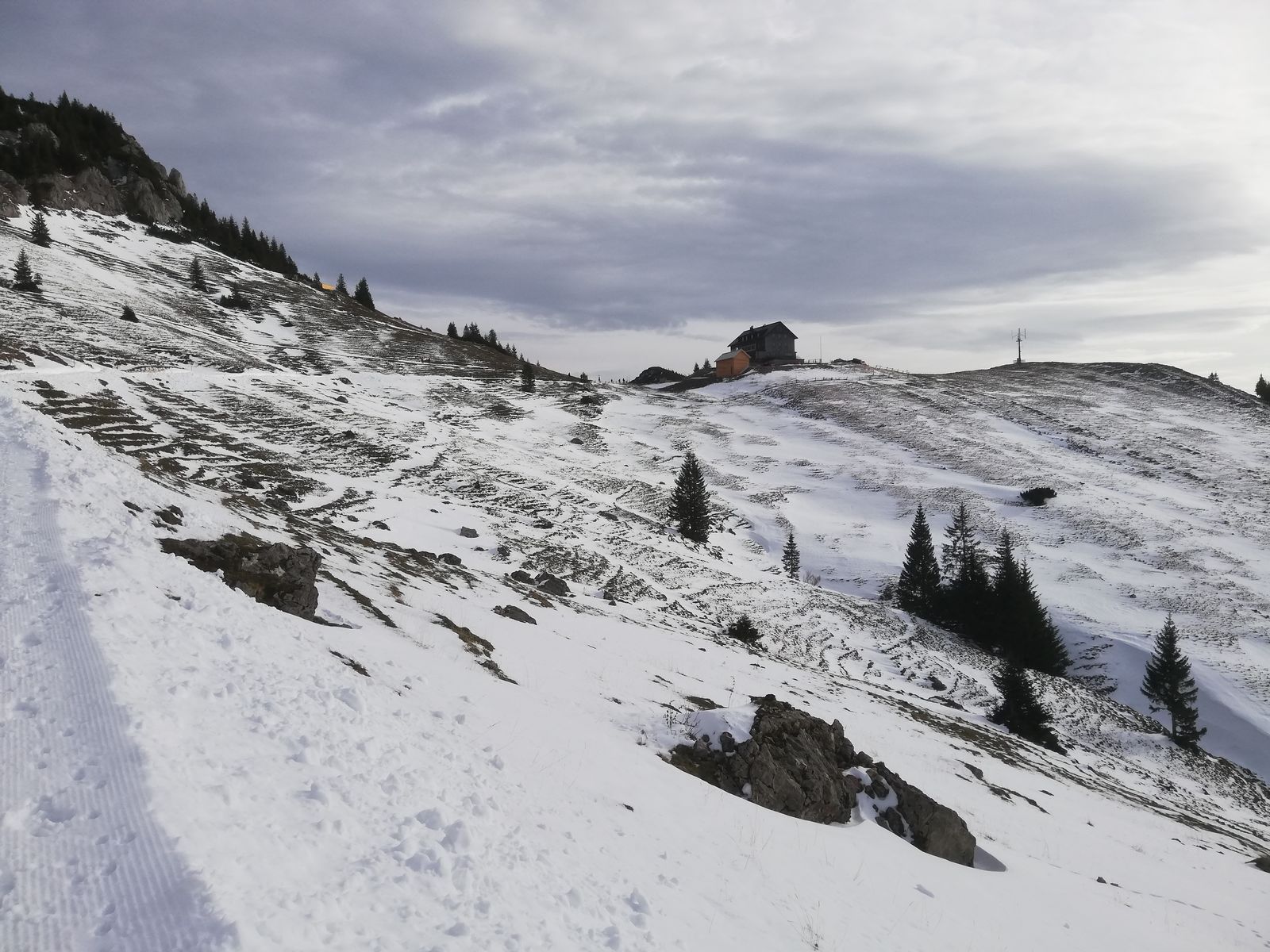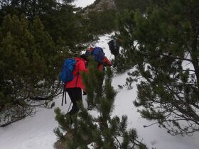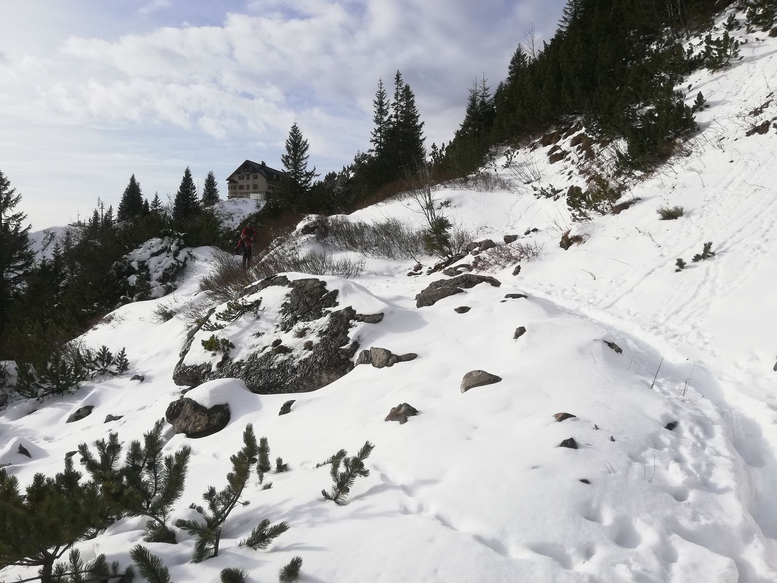 Vom Spitzingsee zum Rotwand Haus (derzeit geschlossen wegen Wartungsarbeiten, so ein Schild). Teerstraße bis zur Bergwacht Hütte schneefrei, danach dünne Schneeauflage, dürfte heute schon "durchlöchert" sein.
