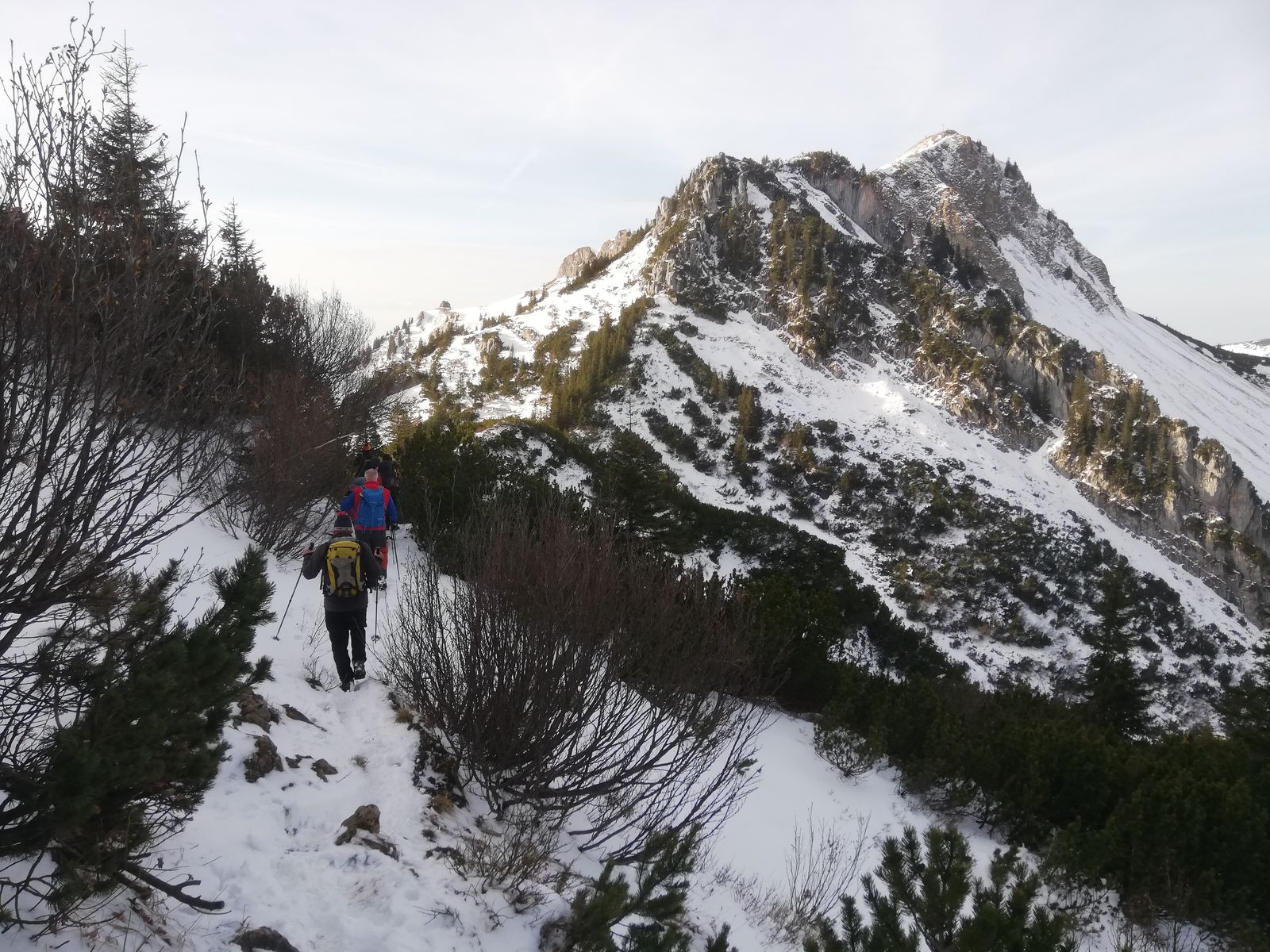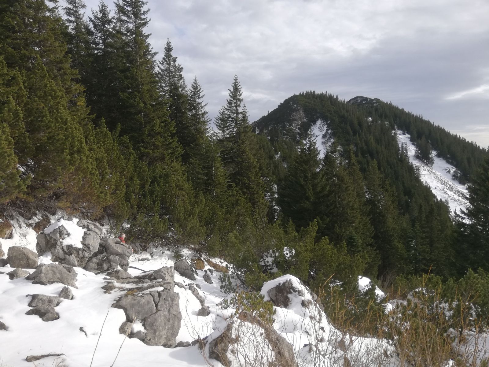 Ab Rotwand Haus etwa 10-20cm Stapfschnee bis zum Gipfel. Leicht rutschig, insgesamt aber problemlos. Bereits gestern und erst recht heute sicher einiges weggetaut.