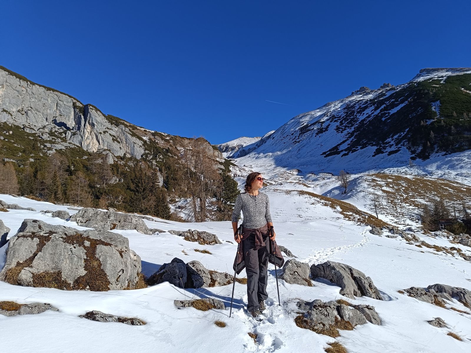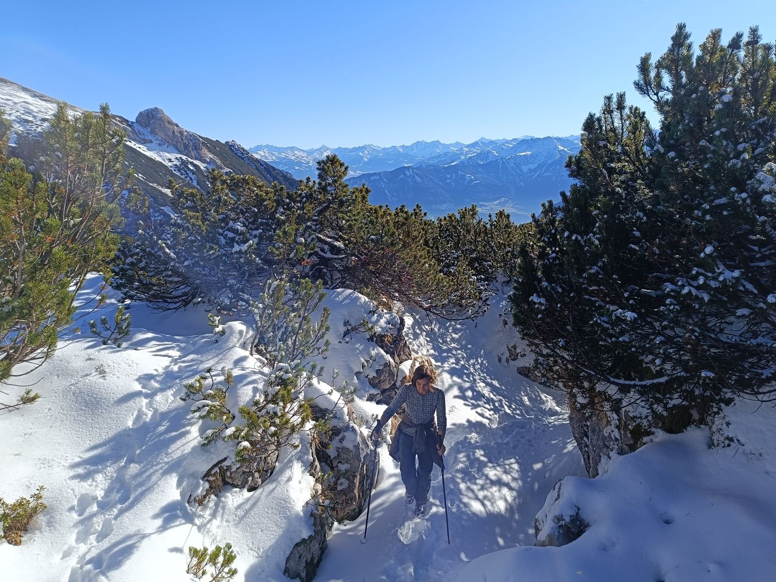 Heute bin ich mit meiner Freundin auf das Klobenjoch im Rofan gegangen. Aufgrund der sehr sonnigen Exposition handelt es sich um eine ideale Tour, um in der dunklen Jahreszeit viel Sonne zu genießen. Außerdem sehr schöne Landschaft und herrliches Panorama.