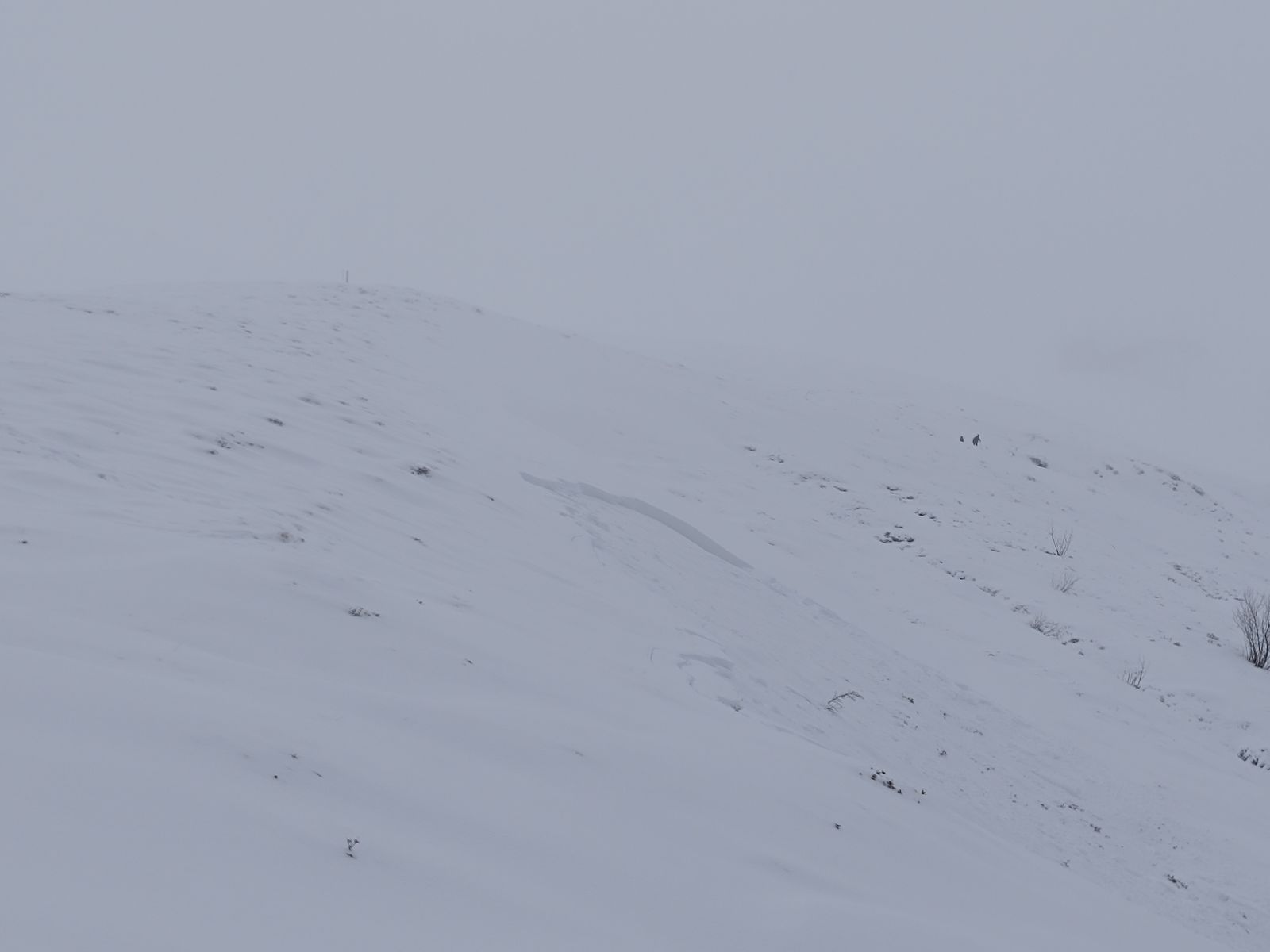 Lawinengefahr: Tatsächlich ist heute trotz der geringen Schneelage im Bereich des Aufstiegs in einer Mulde ein Schneebrett abgegangen (siehe Bilder). Entweder Spontan- oder Fernauslösung.