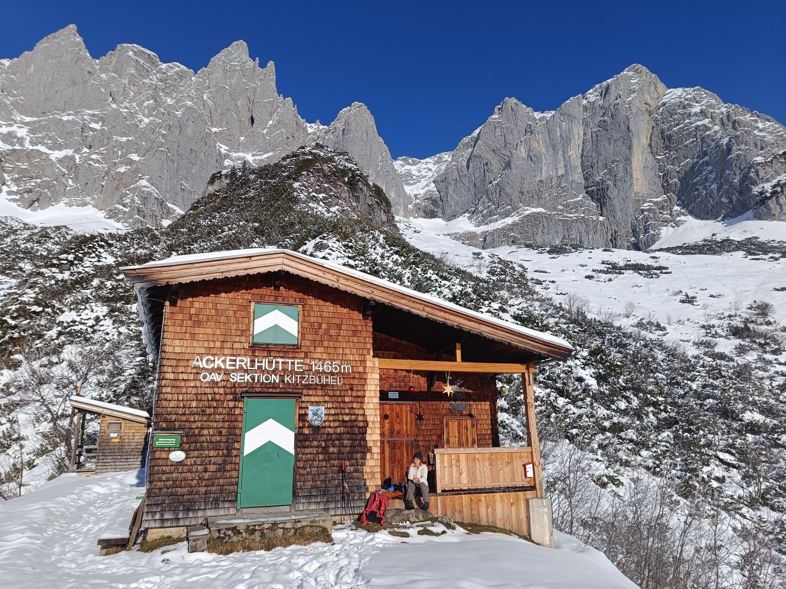 Heute Vormittag haben wir eine kleine Tour im Wilden Kaiser gemacht. Vom PP ging es auf dem Steig zur Oberen Regalm und weiter zur Ackerlhütte. Runter auf dem gleichen Weg. Die Verhältnisse sind sehr schön winterlich. Unten 5, bei den Hütten etwa 30cm. Da bereits eine Spur vorhanden war, ging es gut ohne Schneeschuhe; bei Touren über 1500 Metern werden solche aber grundsätzlich momentan sinnvoll sein. Ski eher noch nicht...Gamaschen waren angenehm, Grödel brauchte es nicht.