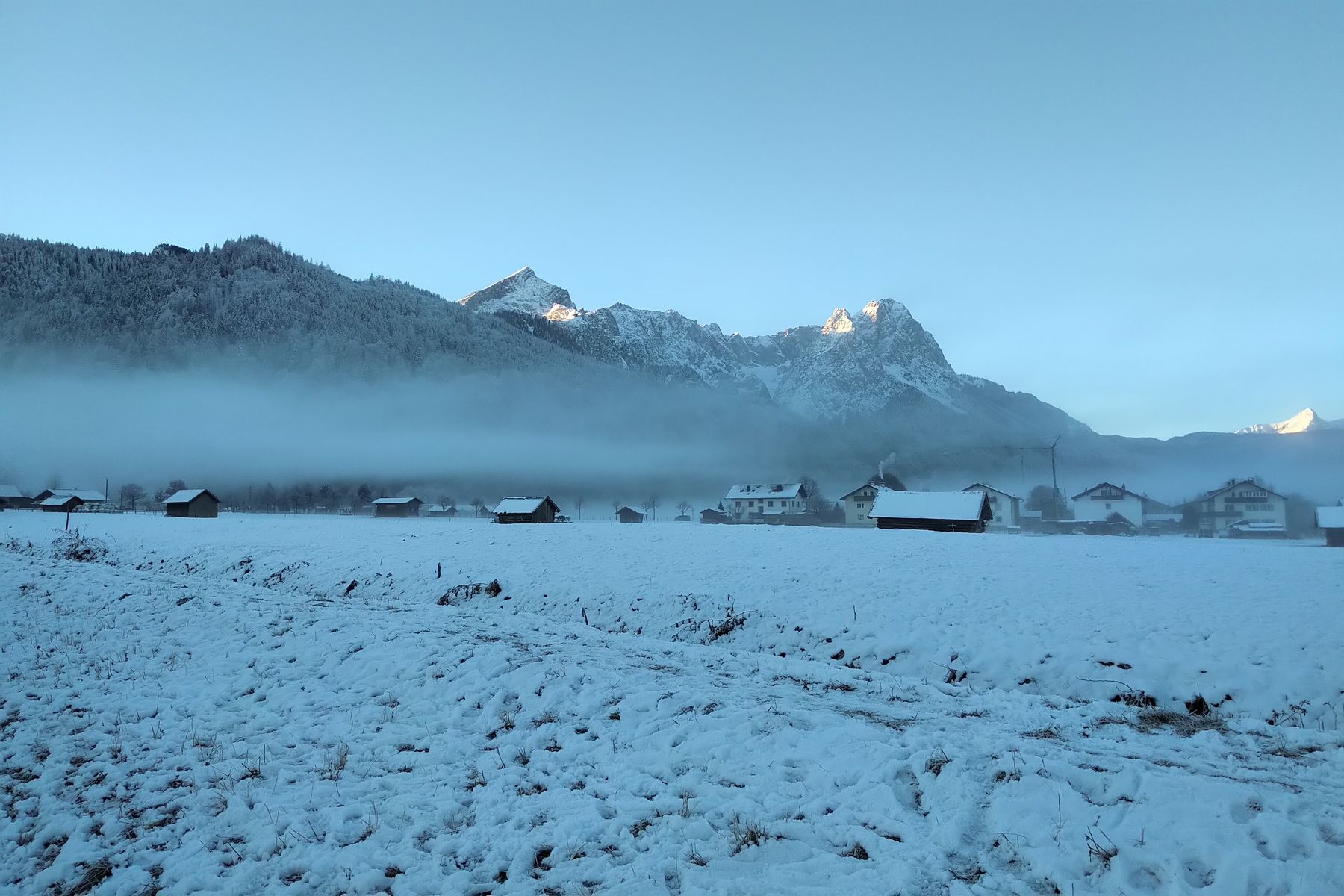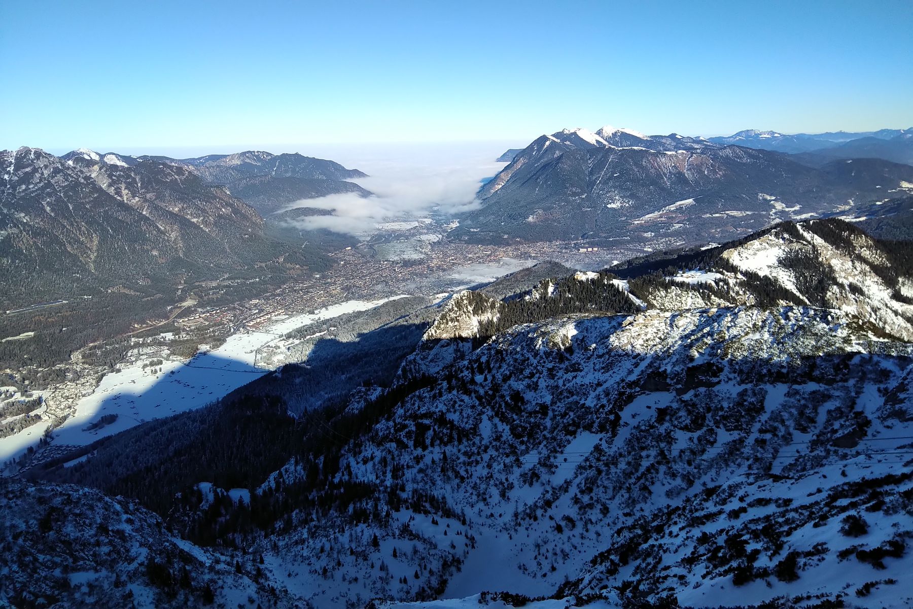 Garmisch war gerade noch in der Sonne, nördlich davon kam dann bald die Nebelsuppe: