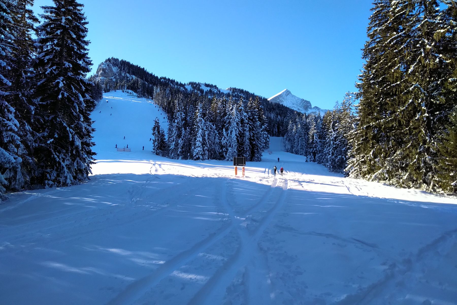 Kurzes Zusammentreffen mit dem Pistenbetrieb: