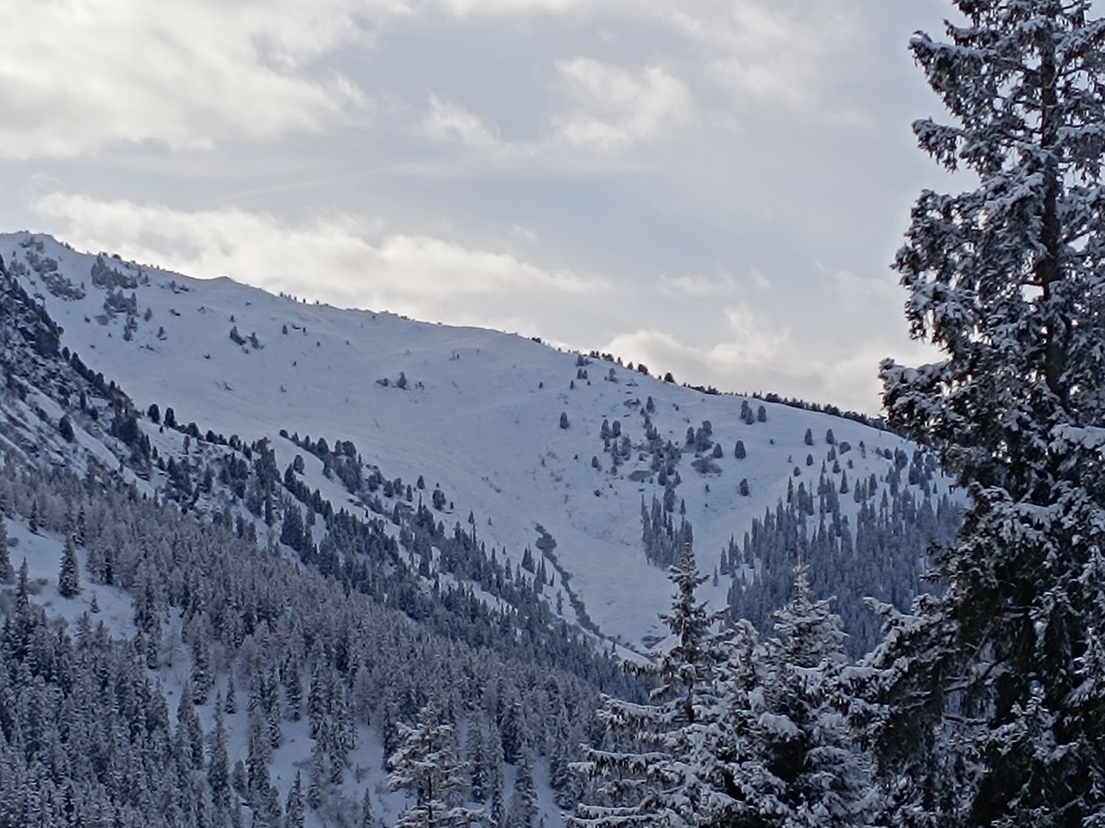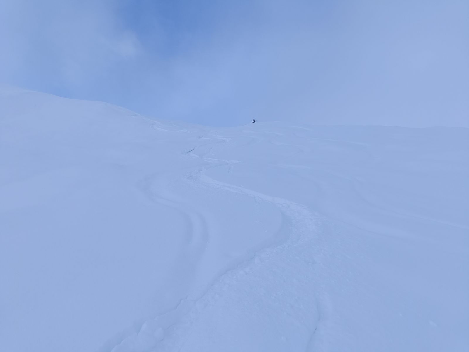 Lawinengefahr: Wegen fehlender Steilheit sehr gering. Außerdem war es heute fast windstill, was ich nicht erwartet hätte.