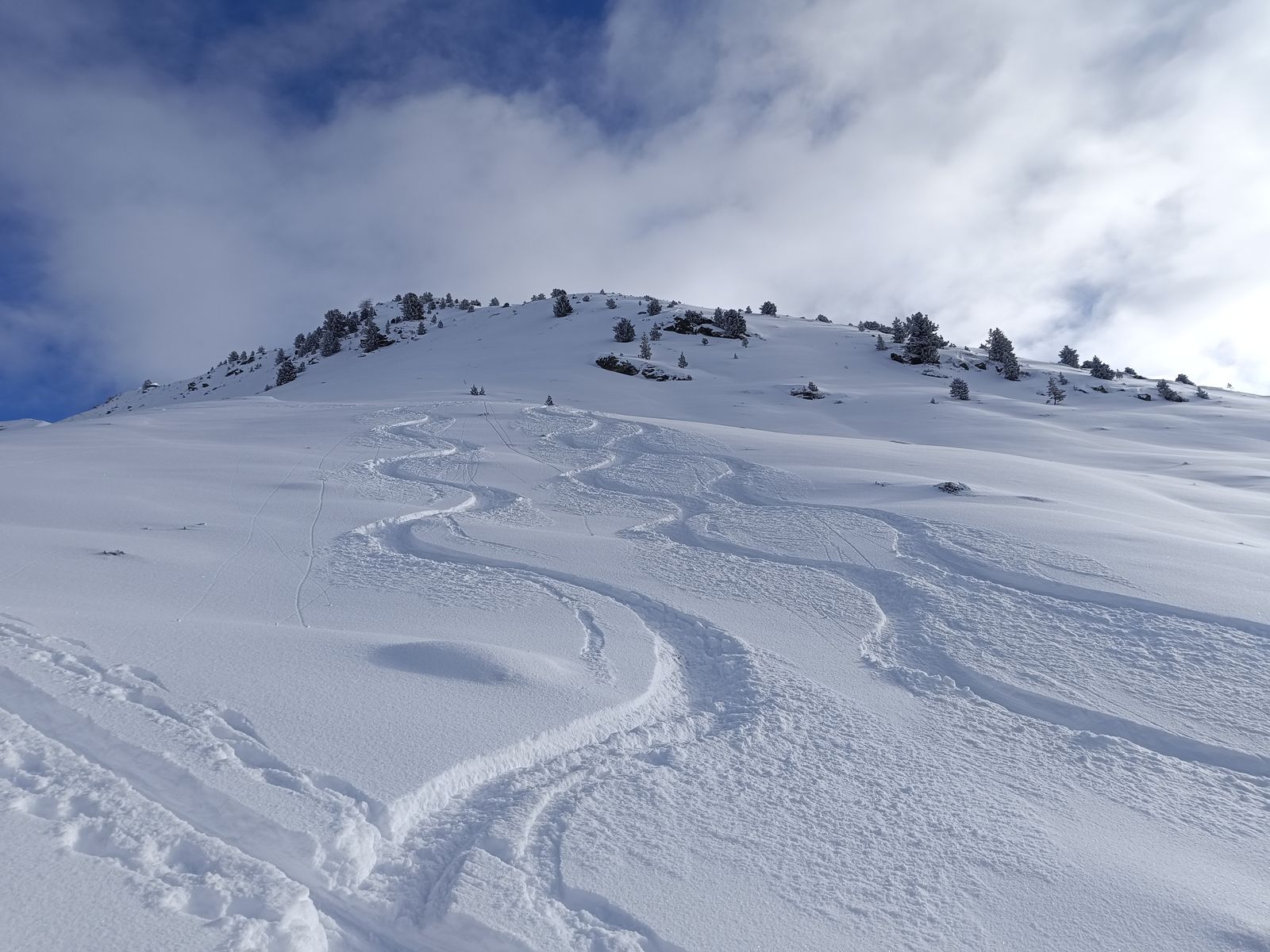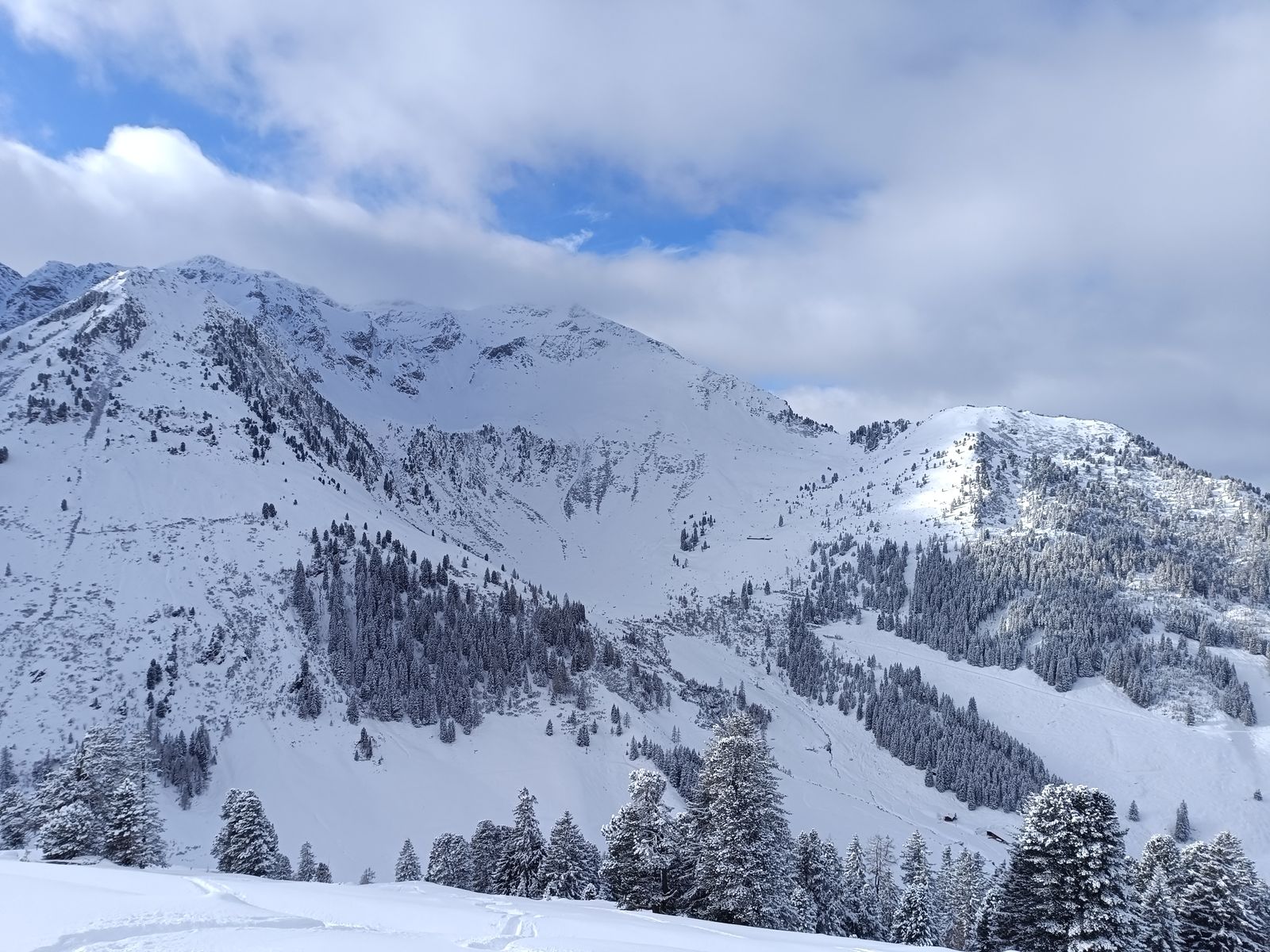 Heute bin ich auf der Standardroute via Faulbaumgarten- und Stadelkehralm zum Kleinen Beil. Ganz oben war ich nicht, da der kurze, aber steile Gipfelhang stark windgeprägt und mit Triebschnee beladen ist. Gleiches gilt für den Gipfelbereich des Lämpersberg in noch höherem Maße. Auch von den fünf Kollegen, die heute am Weg waren, ist niemand zum Gipfel hoch. Daher die Gefahrenbewertung "erheblich", obwohl der restliche Anstieg total sicher ist: Ganz fluffiger Pulver und deutlich mehr Schnee als an den benachbarten Bergen. Ich habe schon öfter die Beobachtung gemacht, dass am Beil im Windschatten des Großen Galtenbergs mehr Schnee fällt und meist bis auf die letzten 100Hm ohne Windeinfluss. Insgesamt liegt die Schneehöhe bei 50-60cm im Mittel, wovon etwa 30cm Neuschnee sind. Allerdings ist nicht flächendeckend eine Unterlage vorhanden bzw muss grundsätzlich mit Steinen/Baumstümpfen gerechnet werden. Steinski also sehr zu empfehlen.