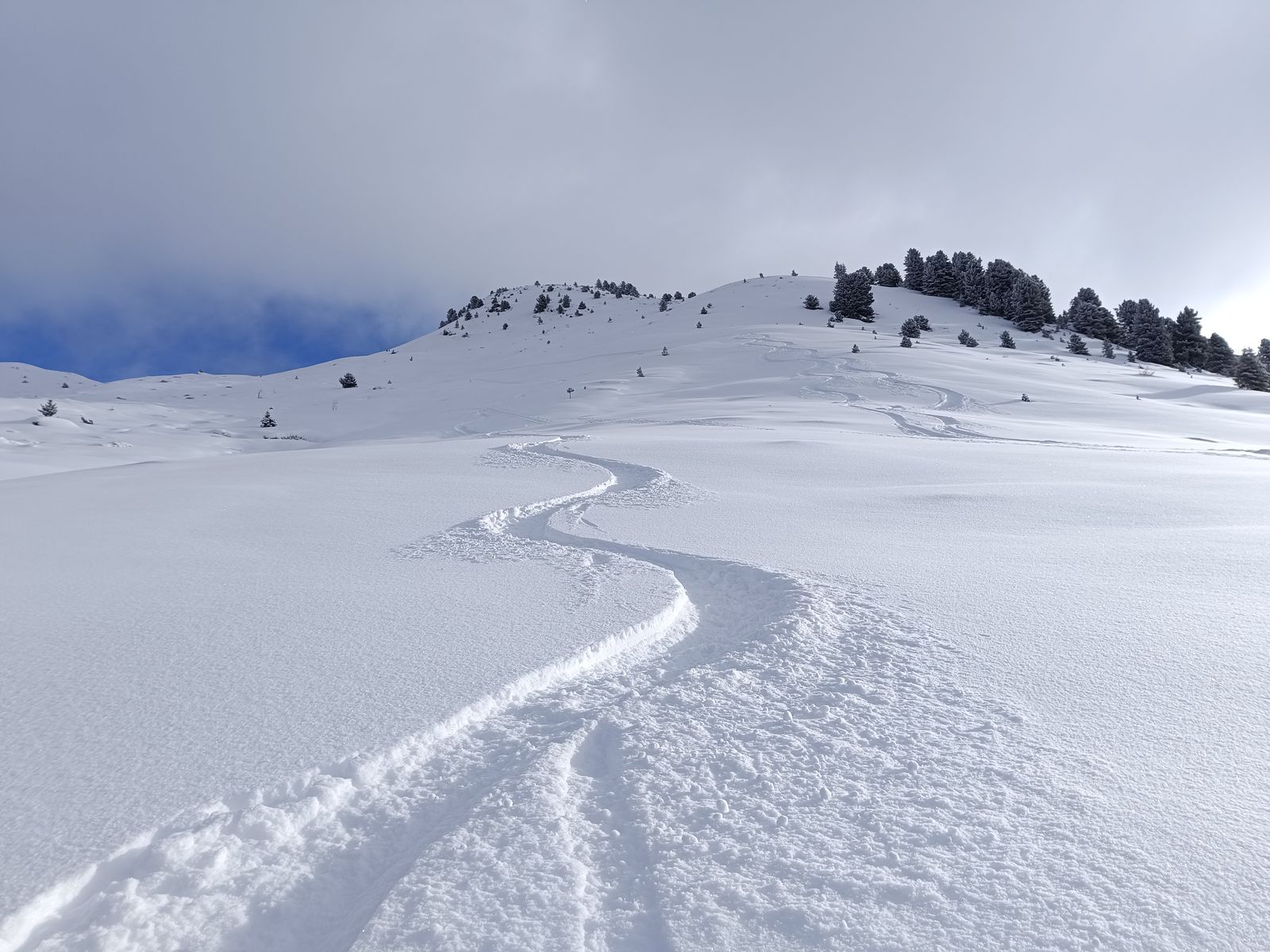 Sonstiges: Aufstieg zu Joel/Saupanzen auch gespurt, aber unten liegt doch ein bisserl wenig Schnee. Heimjoch/Mareitkopf hat noch zu wenig Schnee.