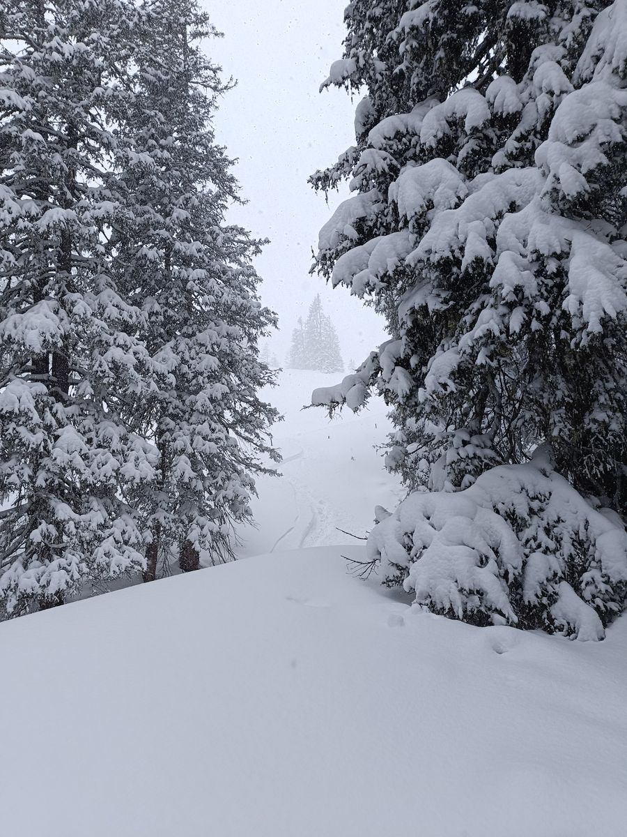Als ich heute um 8 am PP gestartet bin, hatte es aus der Nacht heraus erst 5cm Neuschnee. Allerdings hat es den ganzen Vormittag stark geschneit, sodass weiter oben sicher nochmal 15-20cm dazu gekommen sind.