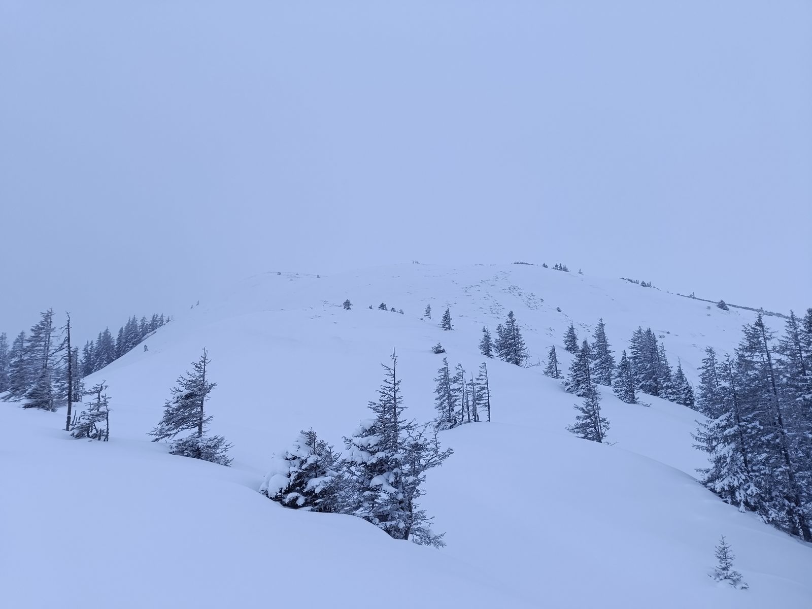 6: Deutlich zu sehen der Windeinfluss im Gipfelbereich. Ich bin bis zu der obersten hier zu sehenden Kuppe aufgestiegen.