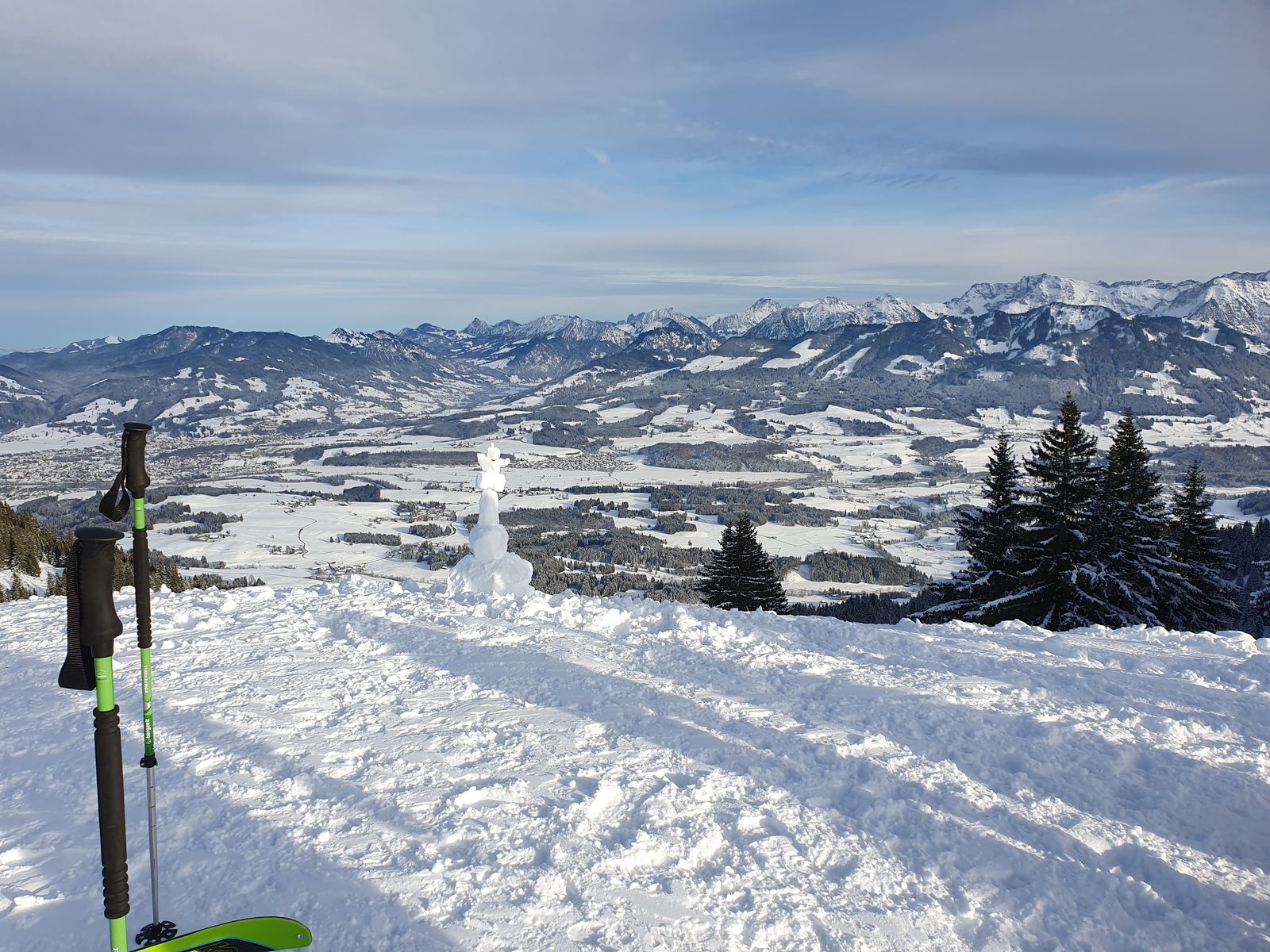 4: Blick vom Rangiswanger Horn mit kleiner Schneeskulptur
