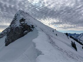 Heute ging's mit dem YouTuber Gerhard Wiedemann auf den Rether Kopf. Start bei zapfigen -12,5 °C ins Unterautal hinein - leider war heute die Straße im ersten Teil- gesplittet. Man kommt aber am Rand gut runter. Wir sind diesesmal den Hang zum Gipfel direkt von der Kleinzemmalm angegangen und nicht wie üblich vom Rücken hineingequert. Dort waren einige Gleitschneerutsche sichtbar und die Querung dürfte wahrscheinlich etwas unangenehm sein. Der Ausstieg über die Wechte war heute richtig harmlos.