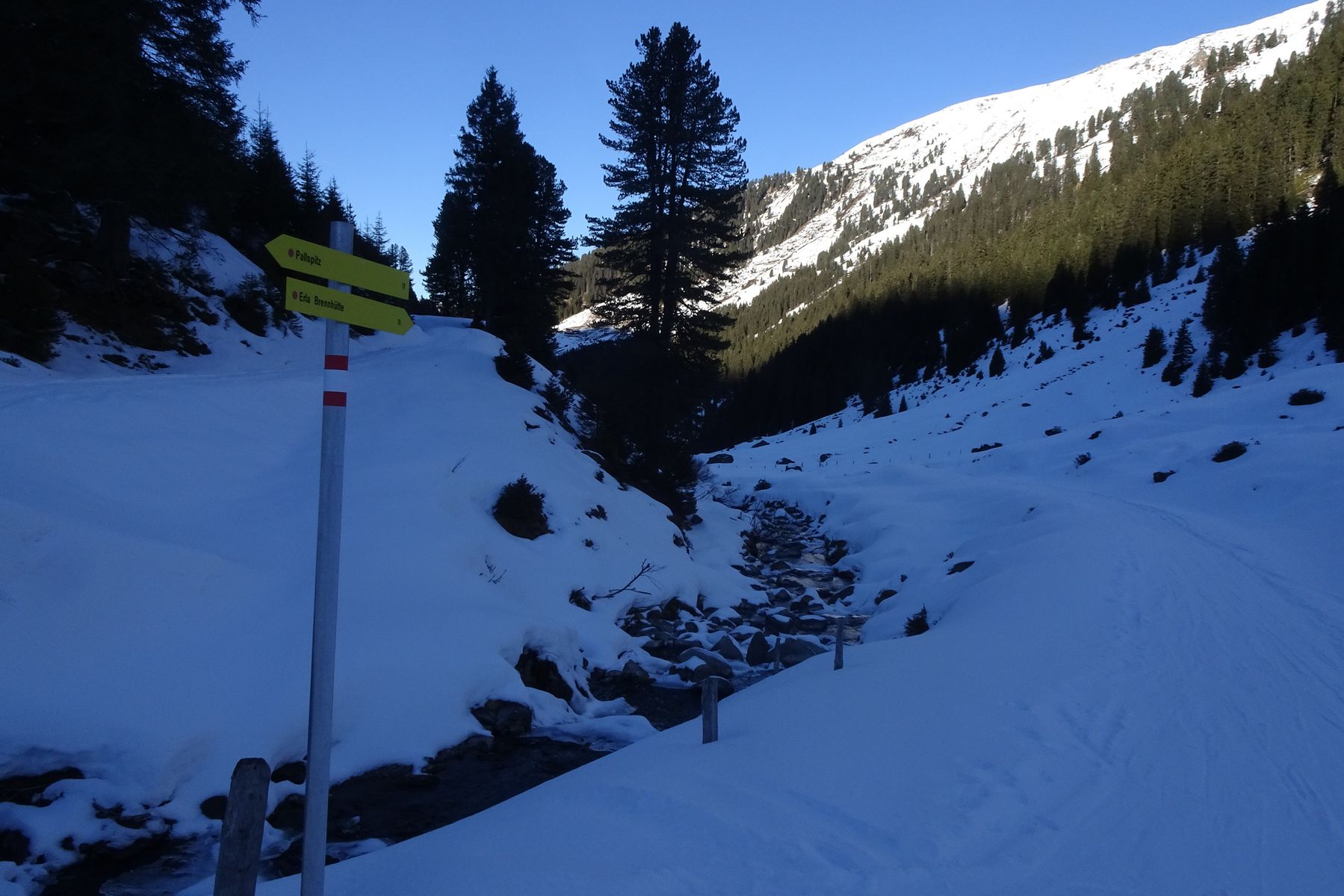Aufstieg und Abfahrt vom Parkplatz an der Erla Brennhütte über Frommalm. Auf dem Weg entlang vom Frommbach im Wald ein ganz kurzes Tragestück, ansonsten überall ausreichend Schnee bis zum Parkplatz und bei umsichtiger Fahrweise ohne Steinkontakt machbar.