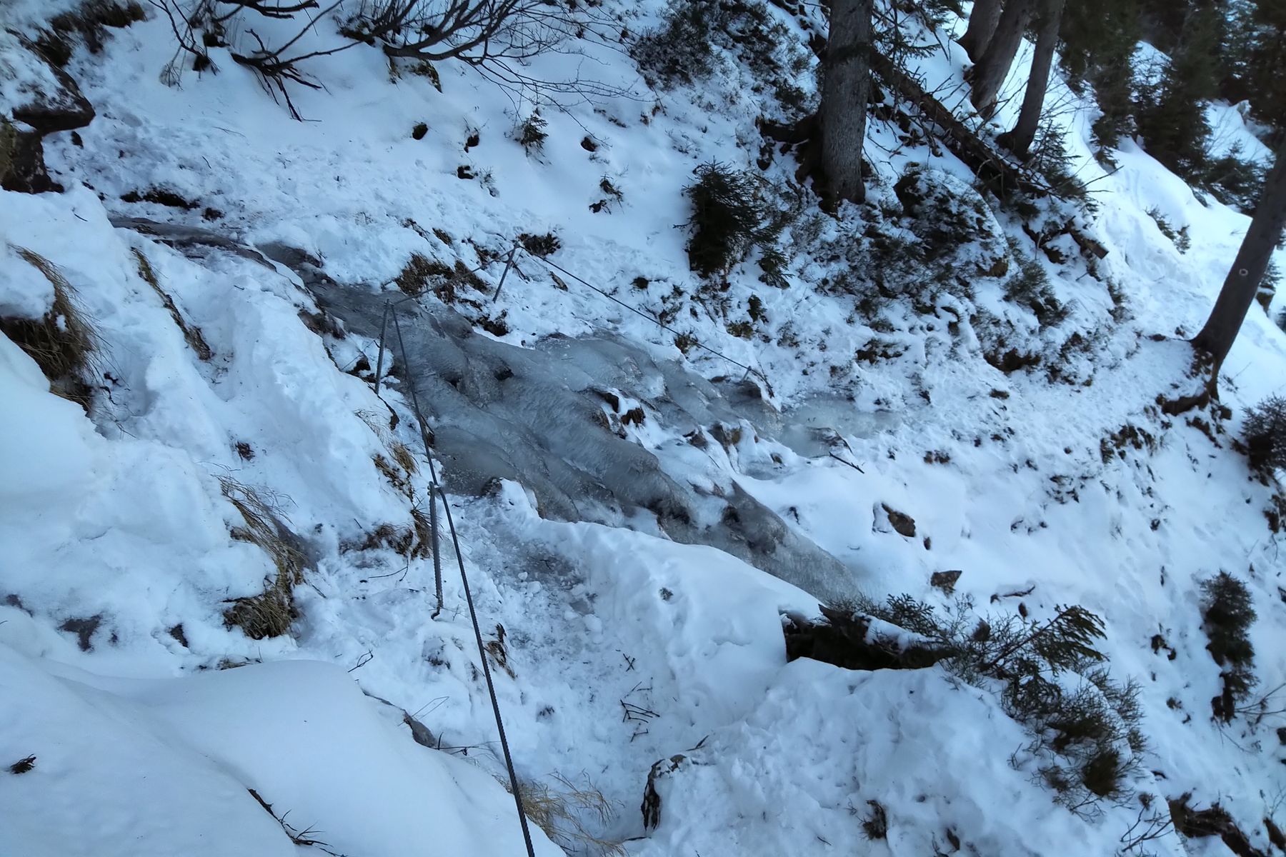 Eisige Bachquerung im Kastensteig (diesen kann man auch über die Forststraße zur Gressensteinalm umgehen):