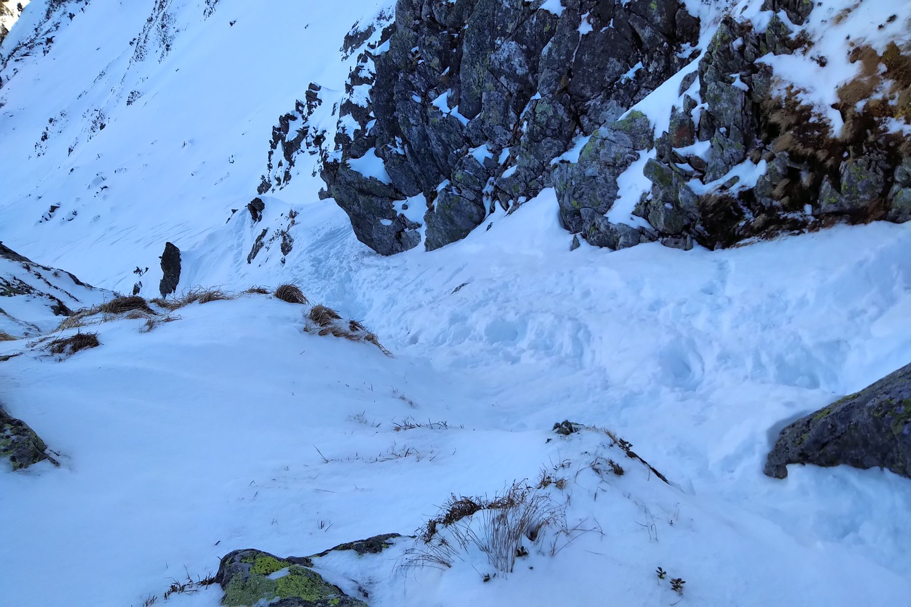 Der Einstieg in die Rinne war schon gespurt (danke unbekannterweise), mit Steigeisen ging das gut zu gehen. Im Nachhinein wäre es wohl auch so gut gegangen, aber hinterher weiß man's meistens besser und sonst hätten wir sie umsonst hochgeschleppt...
