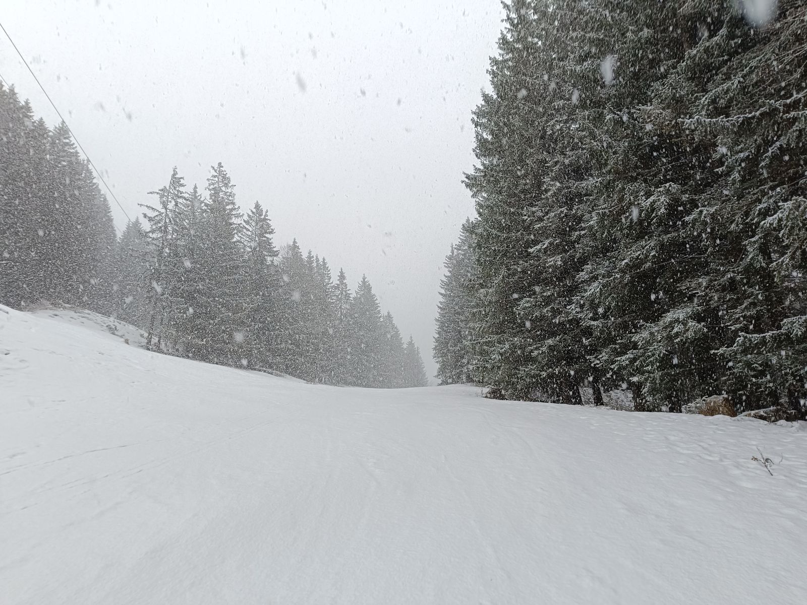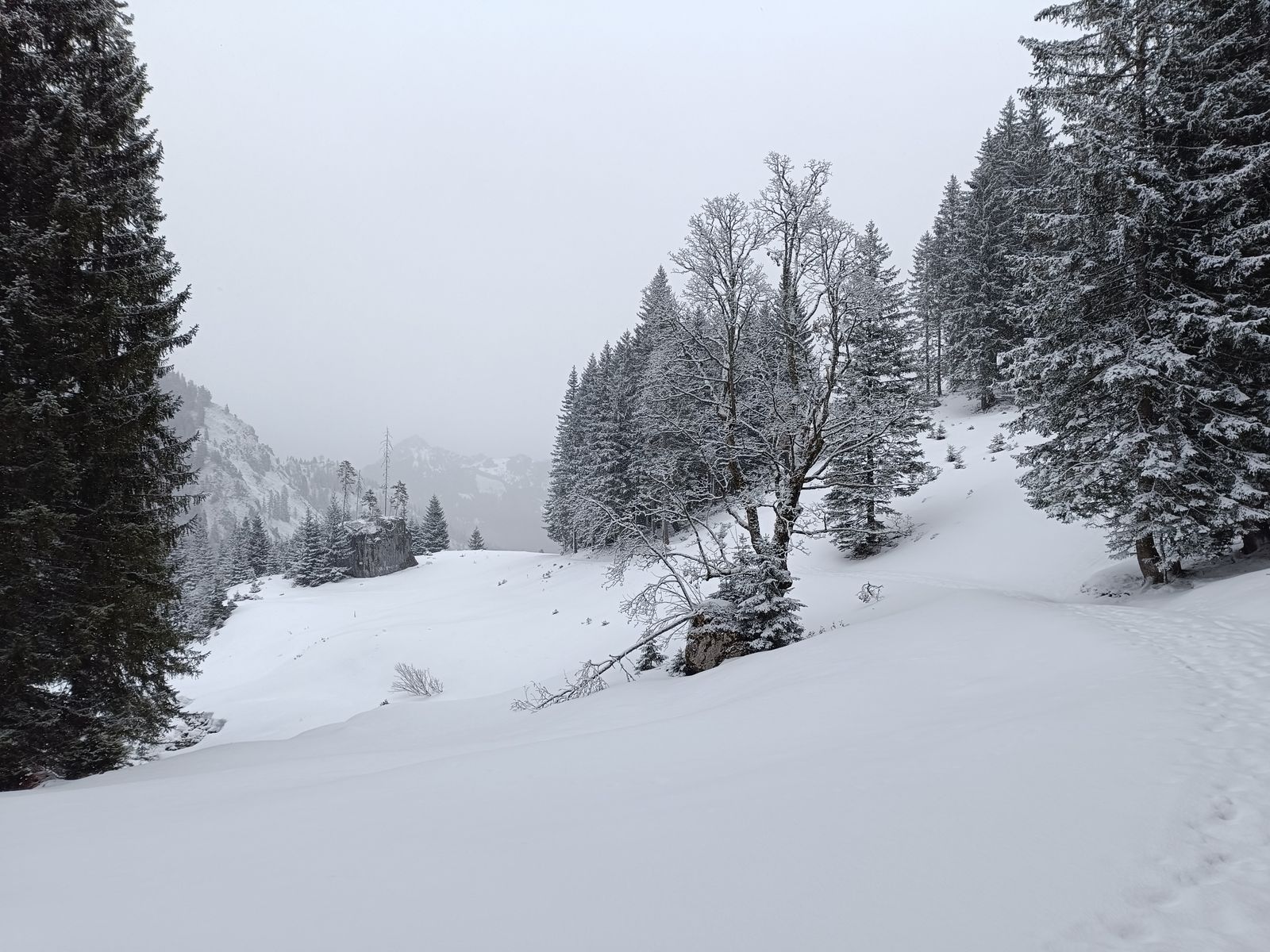 1: Starker (aber leider nur kurzer) Schneeschauer im Lochgraben.