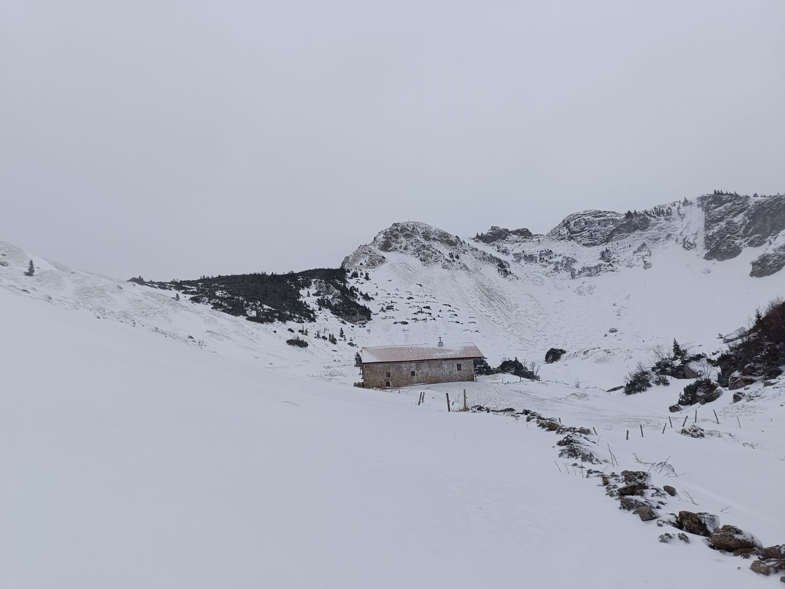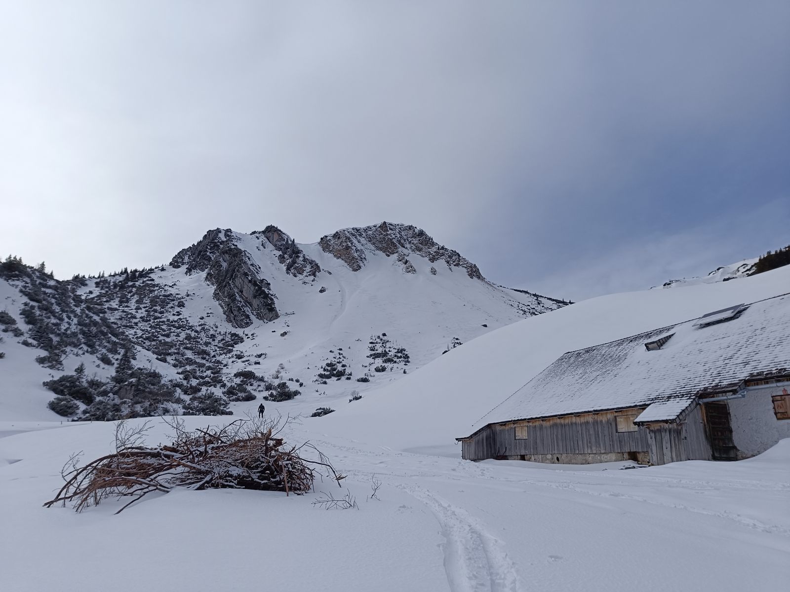 4: Kleintiefental-Alm: Wenig Schnee, aber ausreichend für den Miesingsattel.
