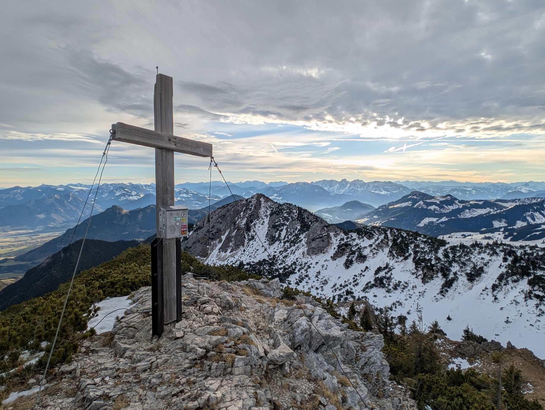 Ansonsten super Bedingungen, Grödel an einigen Stellen schon sinnvoll, insgesamt aber eher "herbstliche" Bedingungen. Eine Wanderung hat sich jedenfalls sinnvoller als der Skibetrieb gegenüber am Sudelfeld angefühlt. Auf der Route bis zum Abstieg keinen Menschen getroffen (auch nicht den Andreas ;-)), aber unglaublich viele Gämsen an der Kaserwand und Soinwand.