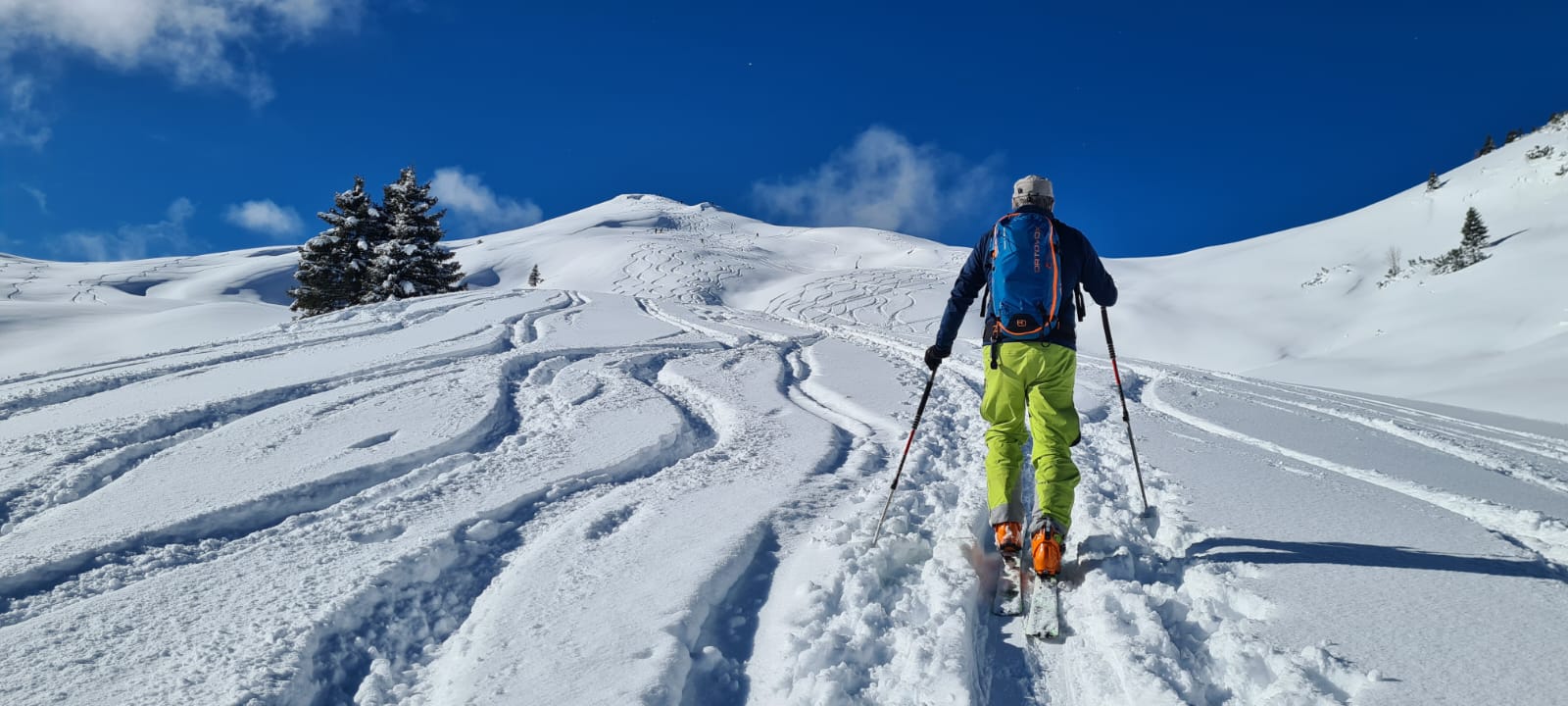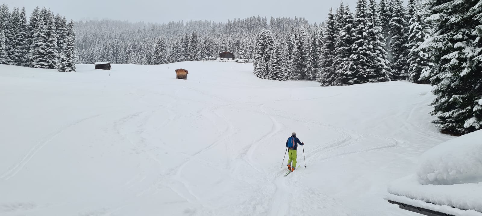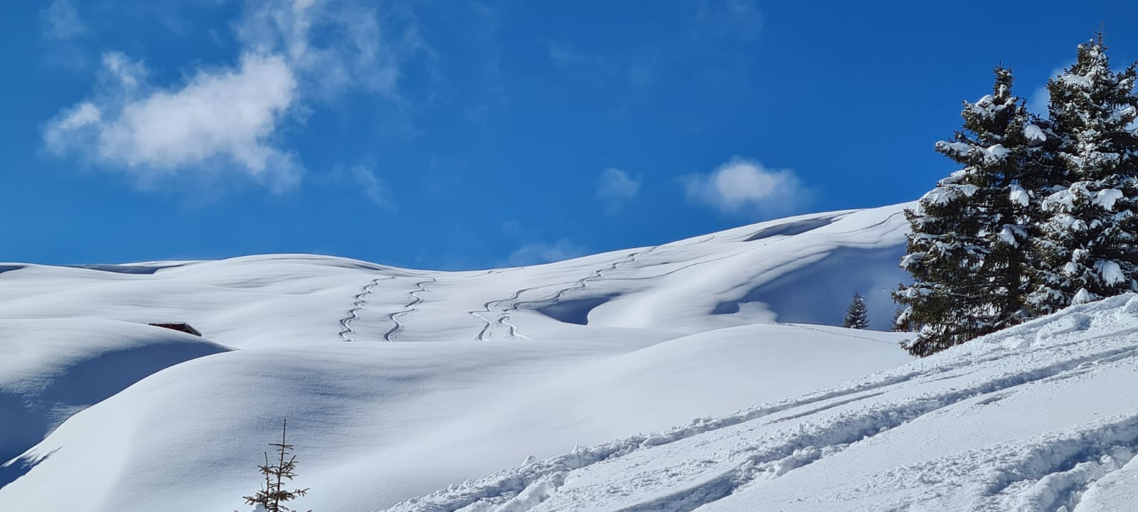 Verhältnisse: Hier traumhafter lockerer Neuschnee - unten ca. 20 cm - oben ca. 30 cm auf absolut brauchbarer Unterlage.