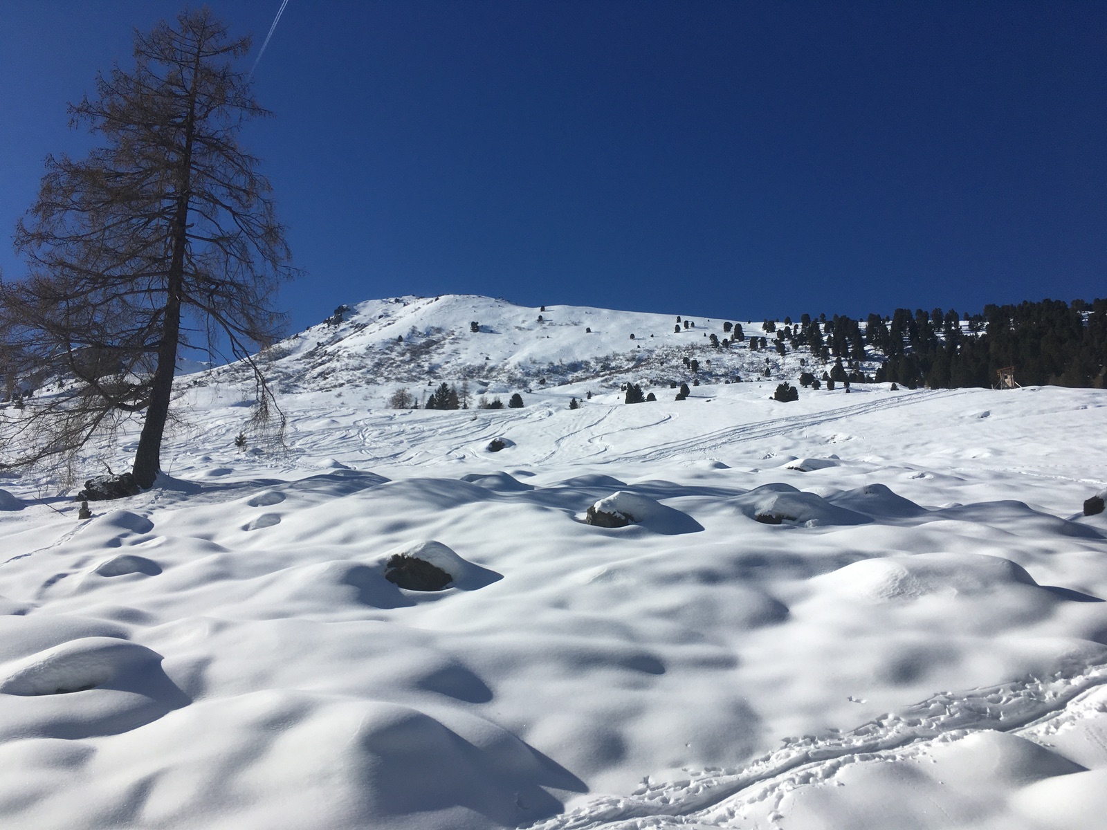 Der spätere Abfahrtshang vom Poverer Jöchl: