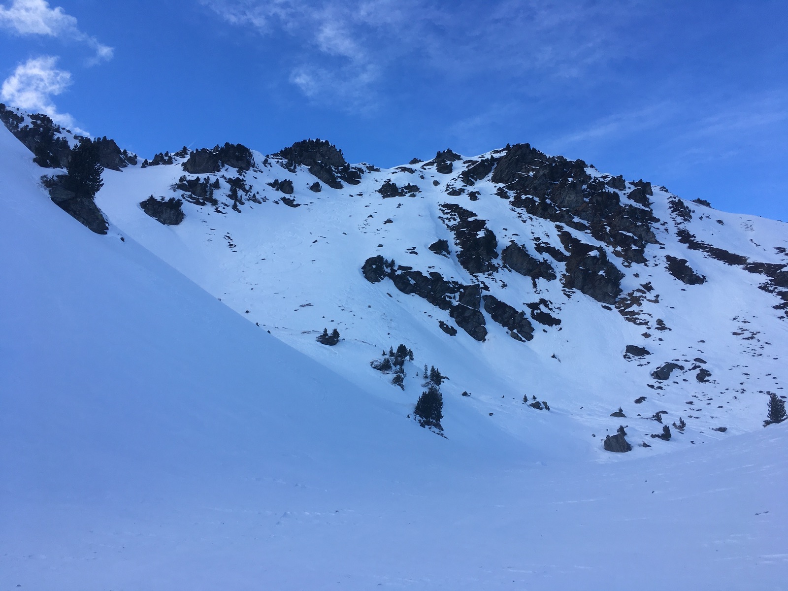 Grundsätzlich schöne Hänge, aber man sieht die allgemeine Schneearmut zur Zeit: