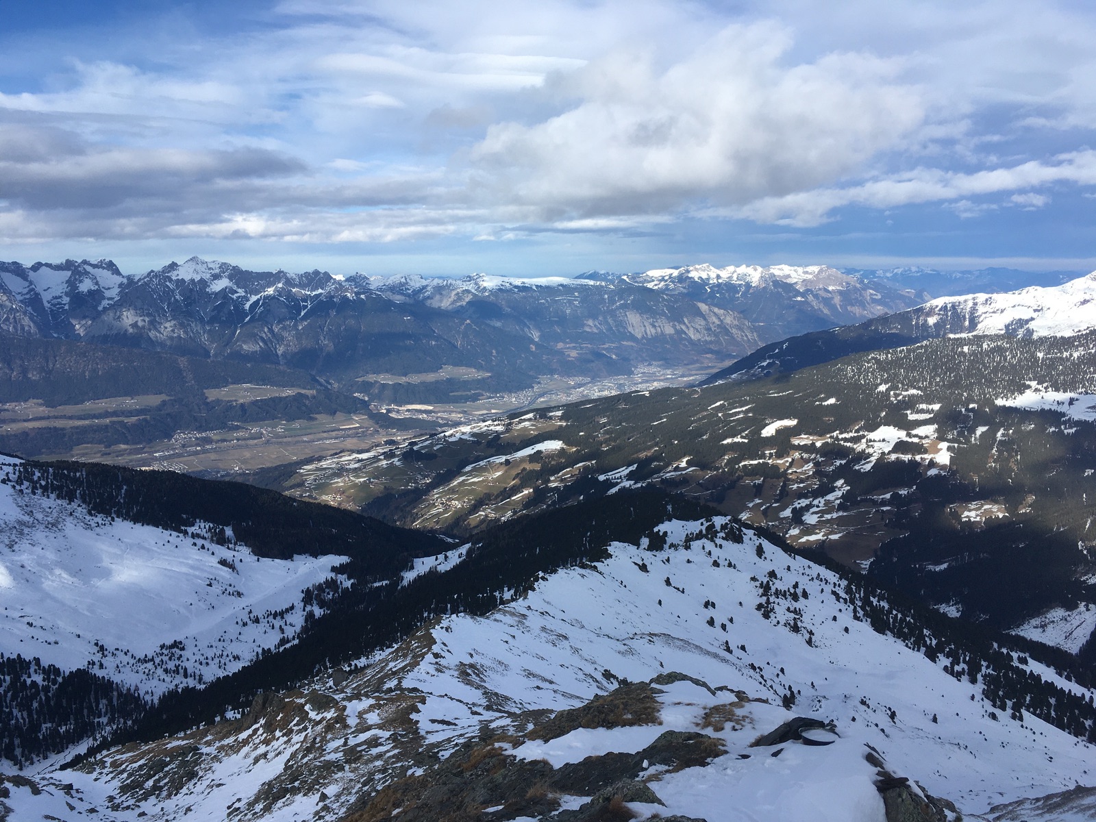 Für die Touren von Innerst oder Kolsassberg taleinwärts dürfte entscheidend sein, wie warm es wird und ob es auf der Höhe da schneit oder regnet. Man muss hier einfach mit langen, relativ flachen Forststraße rechnen, die sicher keine Freude sind, wenn sie nicht laufen (zur Zeit aber eher eisig) bzw. teilweise aper sind. Von Innerst hinauf Richtung Gilfert sehen die sonnseitigen Hänge wie allgemein zur Zeit schon recht aper aus.