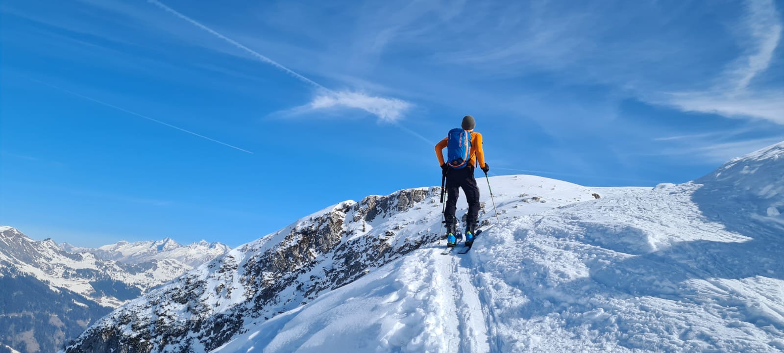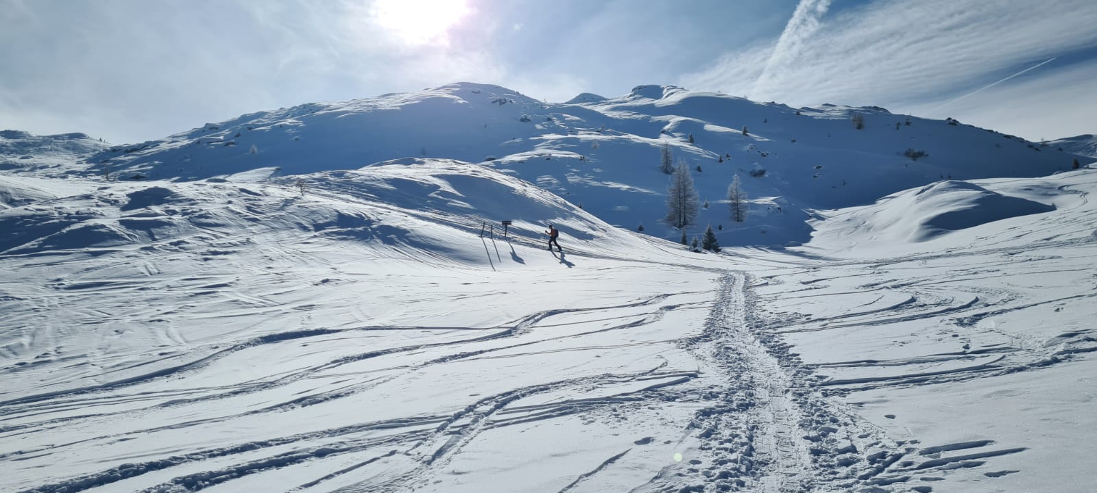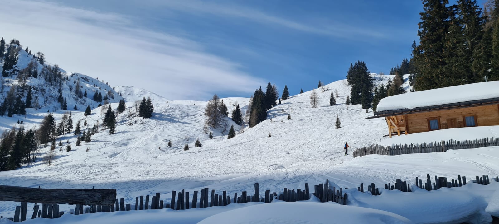 Durchaus brauchbare Verhältnisse. Schnee von unten weg, jedoch im unteren Waldbereich Eis und Bruchharsch, so dass man tunlichst auf der Forststraße bleibt. Nach oben hin zunehmend besser. Ab der Waldgrenze in den Schattseiten nach wie vor Pulver, jedoch meist recht verspurt. Wir haben dennoch eine schöne Linie im unverspurten Pulver gefunden. Wird aber zunehmend schwierig.