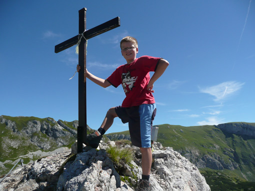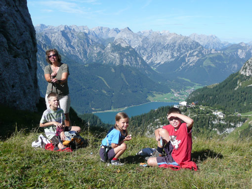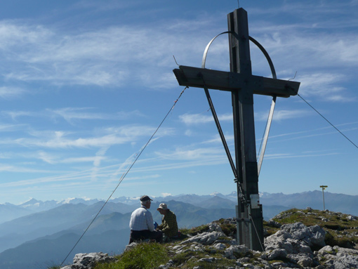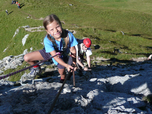 Sonstiges: Viele Leute unterwegs am neuen Fünf-Gipfel-Klettersteig, den manch einer überschätzt und überfordert aufgibt (war an der Grubalacke zu beobachten). Etwas schade: Die Steiganlage führt auch auf den kleinen Gipfel Clesida, der bis dato einen individuellen Charakter hatte. Die mit Helm und Klettersteigset bewehrten staunen dann, dass unsereins mitsamt Kindern dort auch "einfach so" raufkraxelt. Für den Normalweg auf die Haidachstellwaand geht es übrigenss "ohne", wenn man sich die kurze Klettersteigpassage zutraut; habe meine Tochter (6) allerdings mit Seil gesichert.