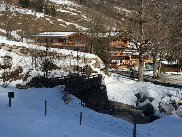 Schnee vom Startpunkt an der Brücke weg, im Wald muss man rauf/runter jeweils etwa 10 Minuten die Skier tragen.