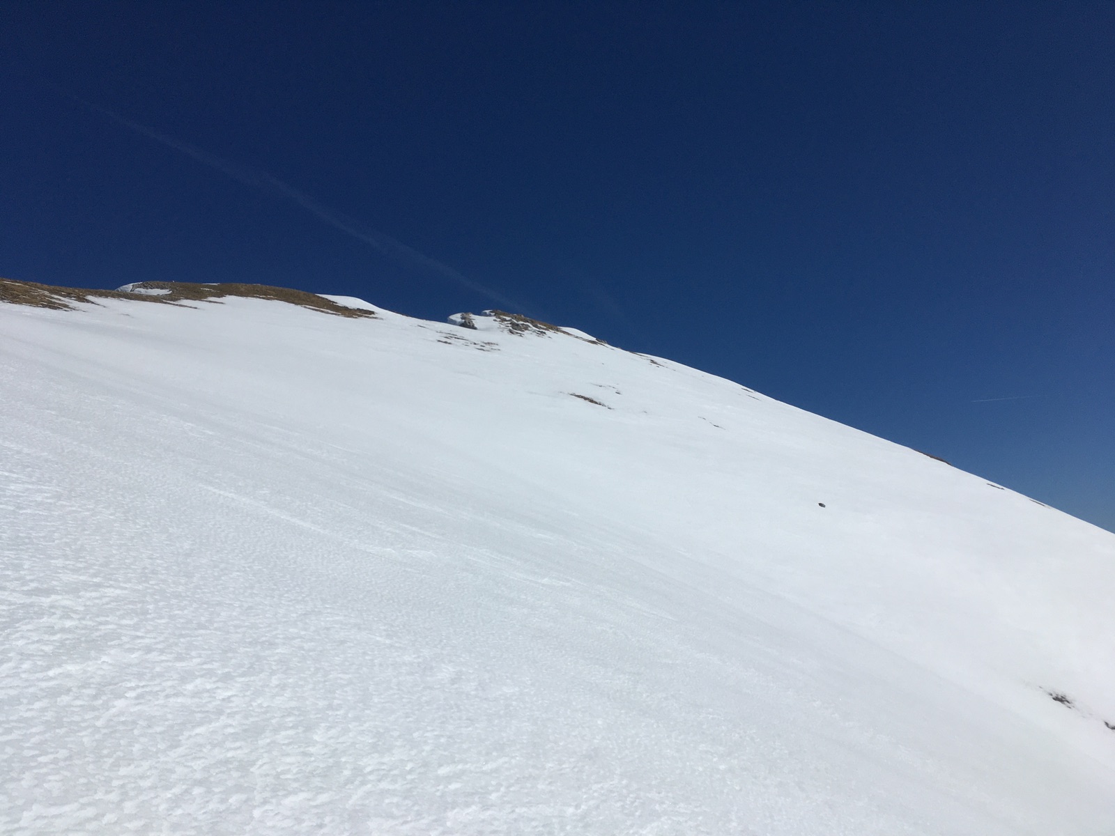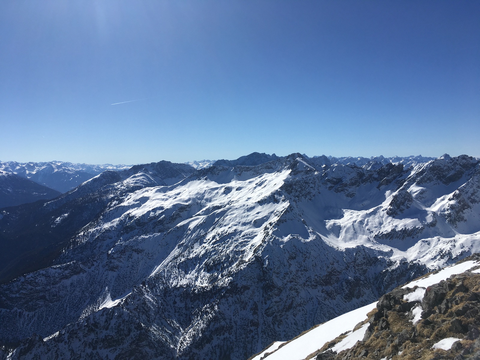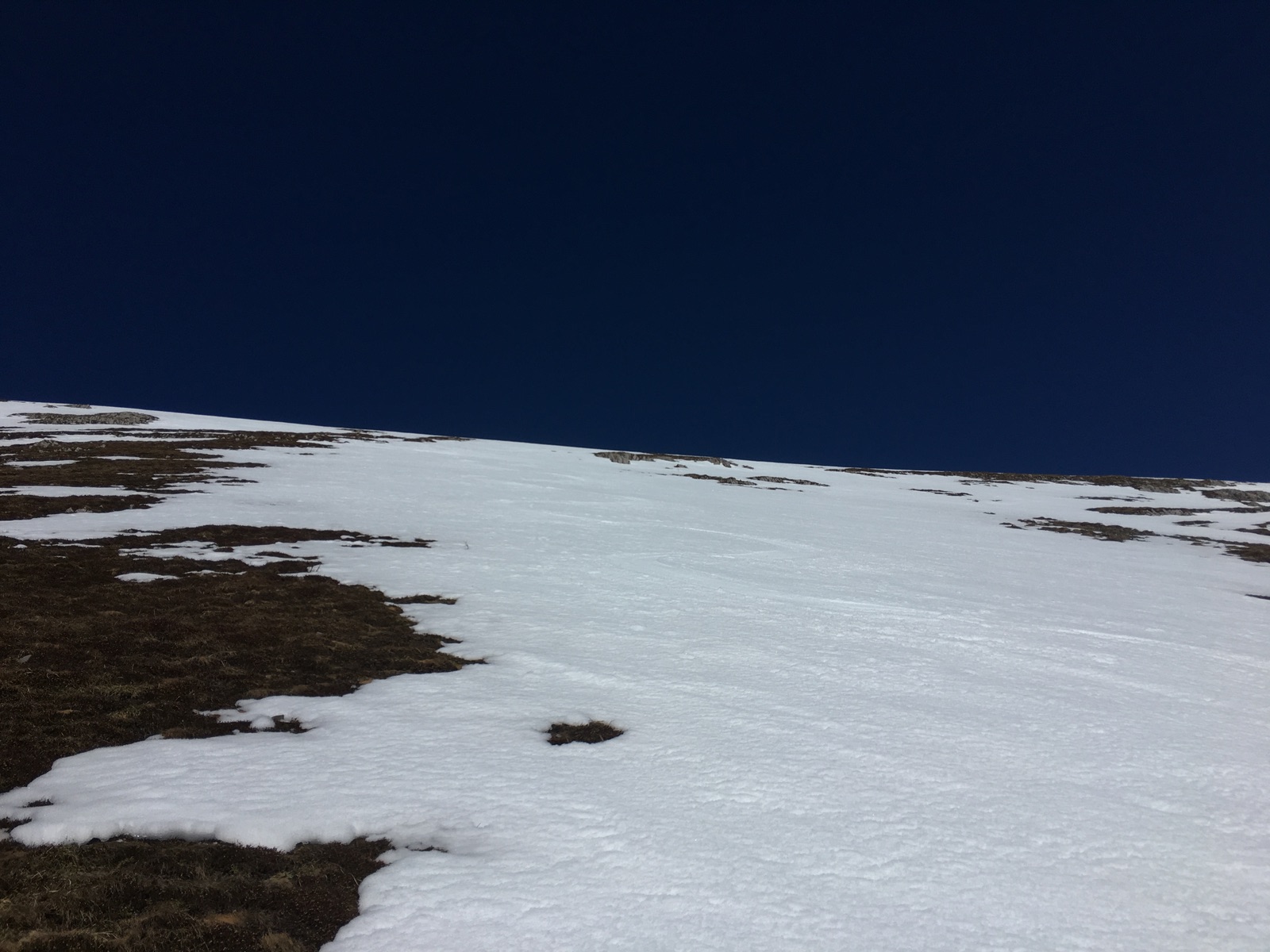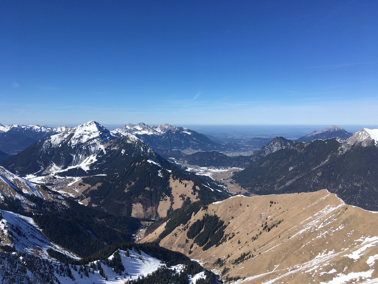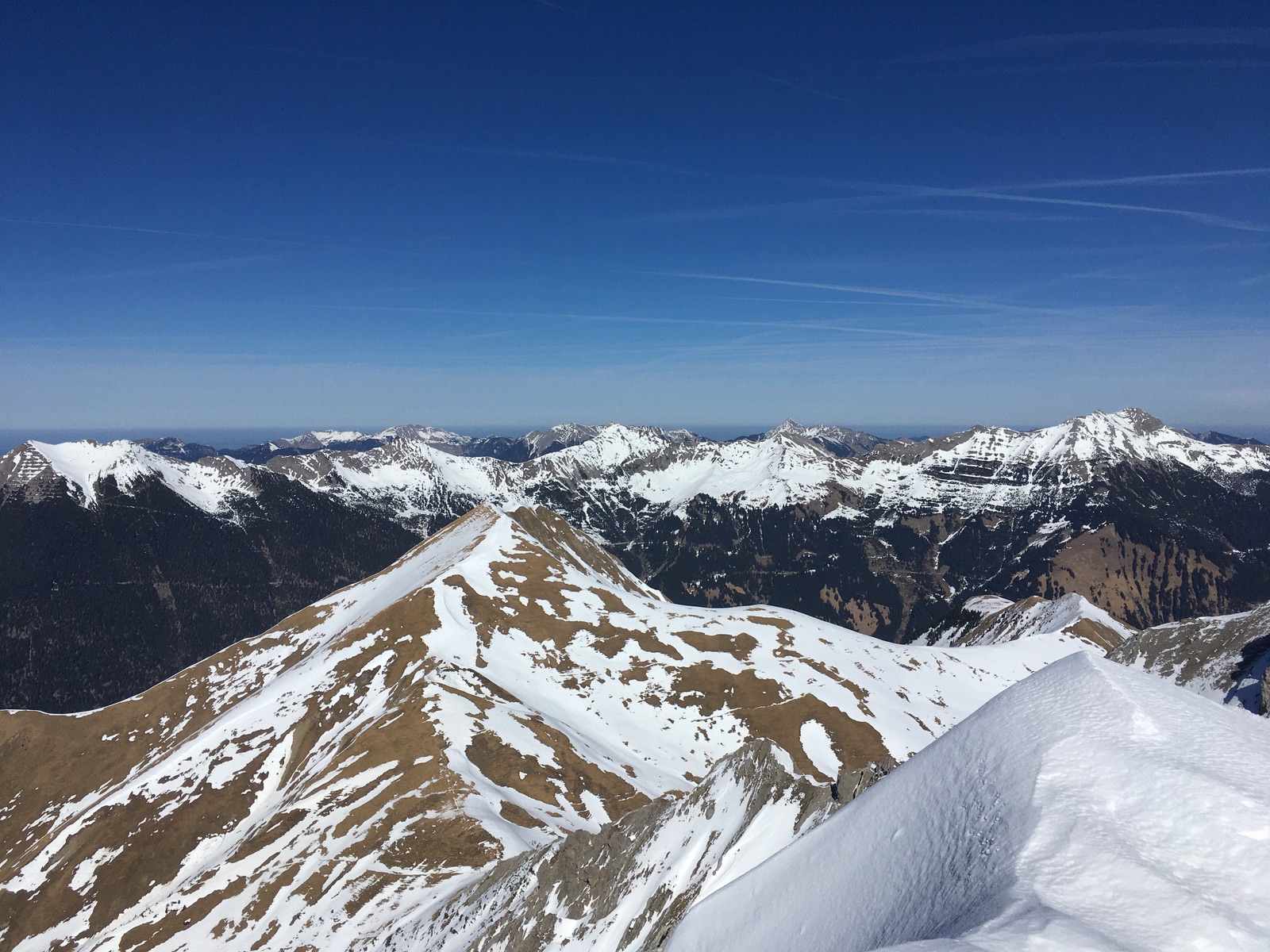 Richtung Norden und an Südhängen erkennt man die für Anfang März wirklich sehr schlechte Schneelage gut: