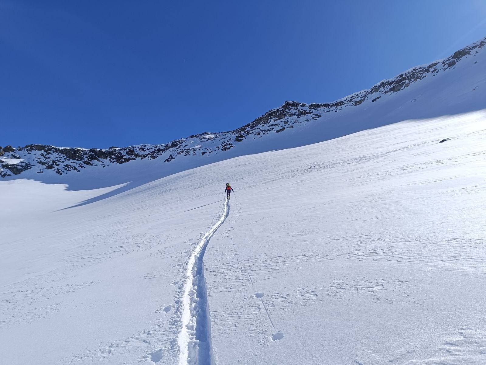 3: Alban spurt über den Rosimferner in Richtung der steilen Rampe.