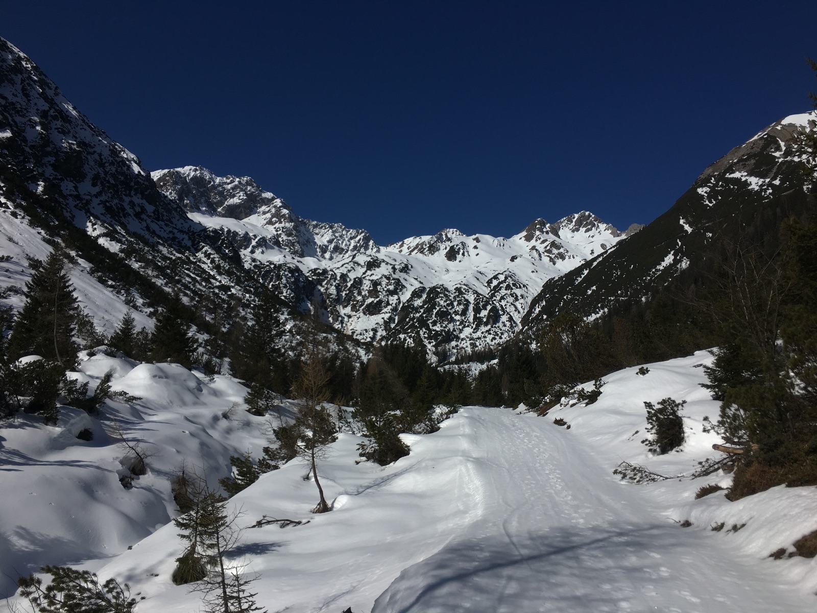 Die nächste eher ungewöhnliche Skitour in den vorderen Lechtalern! Die Steinmandlspitze wird der ein oder andere Tourengeher noch kennen, die Galtbergspitze ist doch eher exotisch (wobei ich heute beim Rundumblick am Gipfel feststellen konnte, dass so ziemlich jeder Gipfel und jede Rinne - auch sehr ungewöhnliche Ziele - mittlerweile angespurt worden waren). Start an der Fernpassstraße - der Fahrweg Richtung Abzweig Afrigall hat eine dünne, teilweise unterbrochene Eisauflage - ging heute noch mit Skiern. Nach der Latschenölbrennerei mussten die Skier einige Minuten getragen werden. Danach noch mehrere kleinere Unterbrechungsstellen, was mit den Steinski nicht zum Abschnallen zwingt. Angesichts der enorm hohen Tempereaturen und starken Sonneneinstrahlung sowie angekündigtem Regen in der kommenden Woche würde ich aber vermuten, dass die aperen Stellen rasch mehr werden. Der Weg hoch zum Bichlbächler Jöchle ist im Übrigen - wie schon im Bericht zur Gartner Wand vermutet - in Teilen aper.