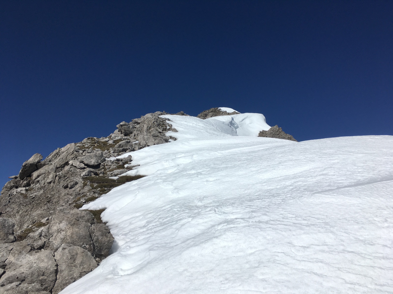 Der weitere Anstieg am Kamm mit Skiern (Vorsicht auf die Wächten jeweils nach rechts):