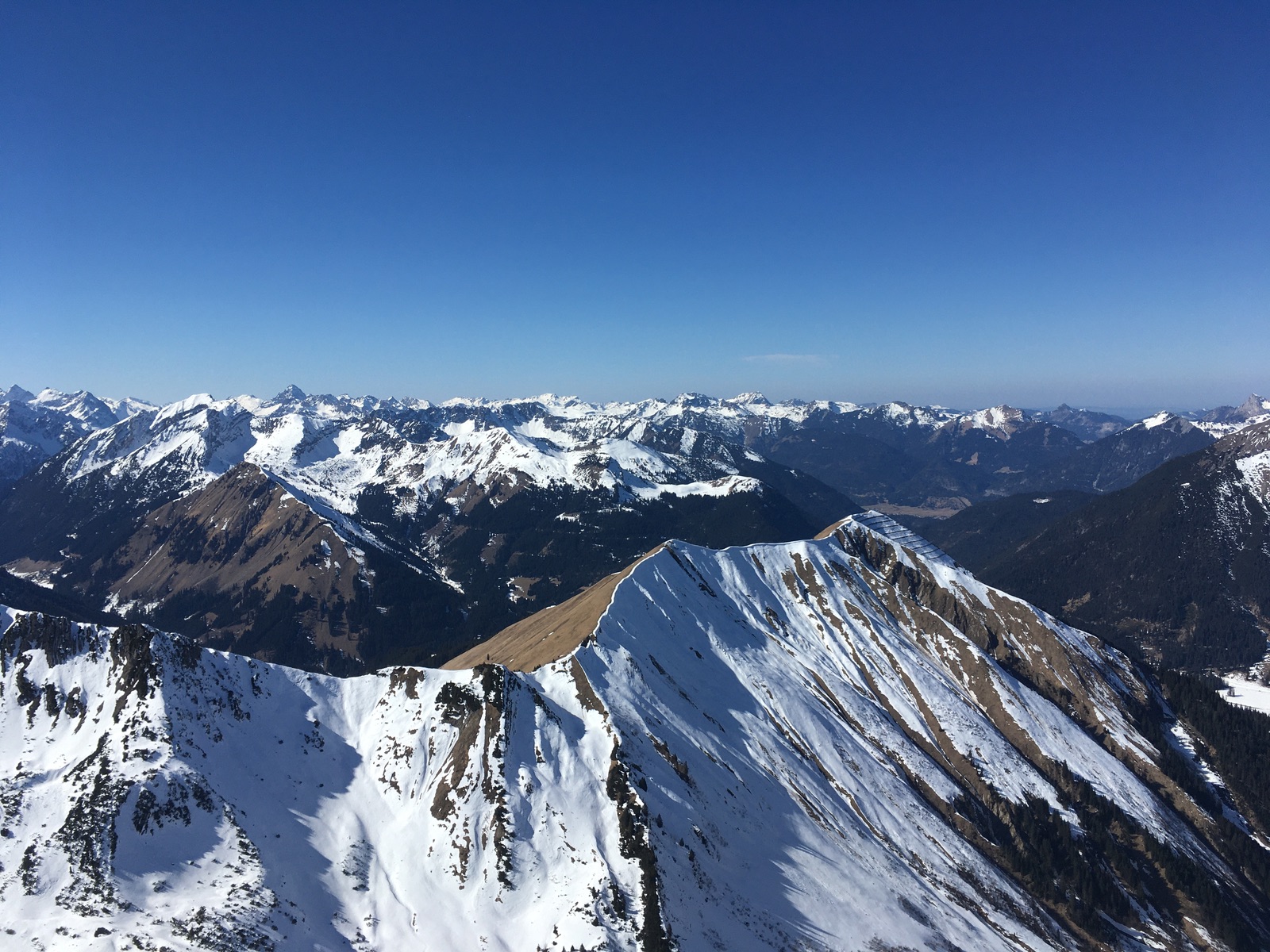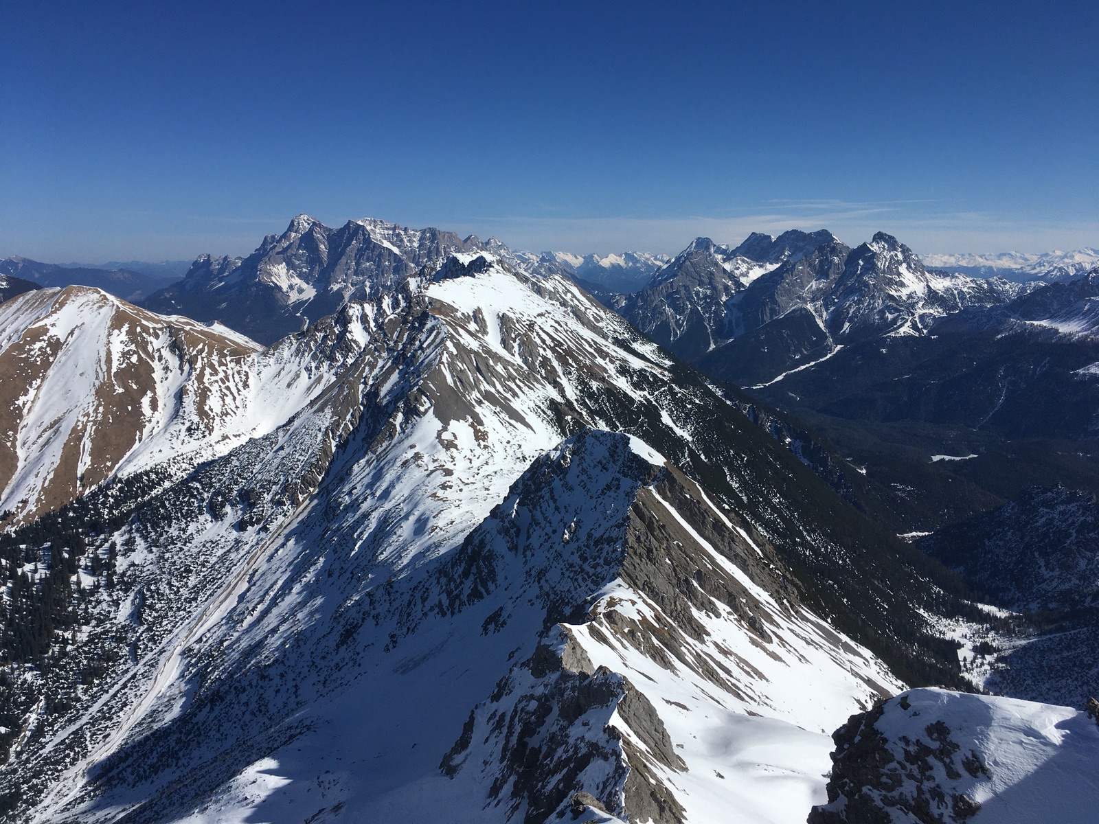 Blick Richtung Suwaldspitze - da waren heute auch zwei Tourengeher unterwegs (auf der Suche nach Pulver - soll sich nur teilweise erfüllt haben):