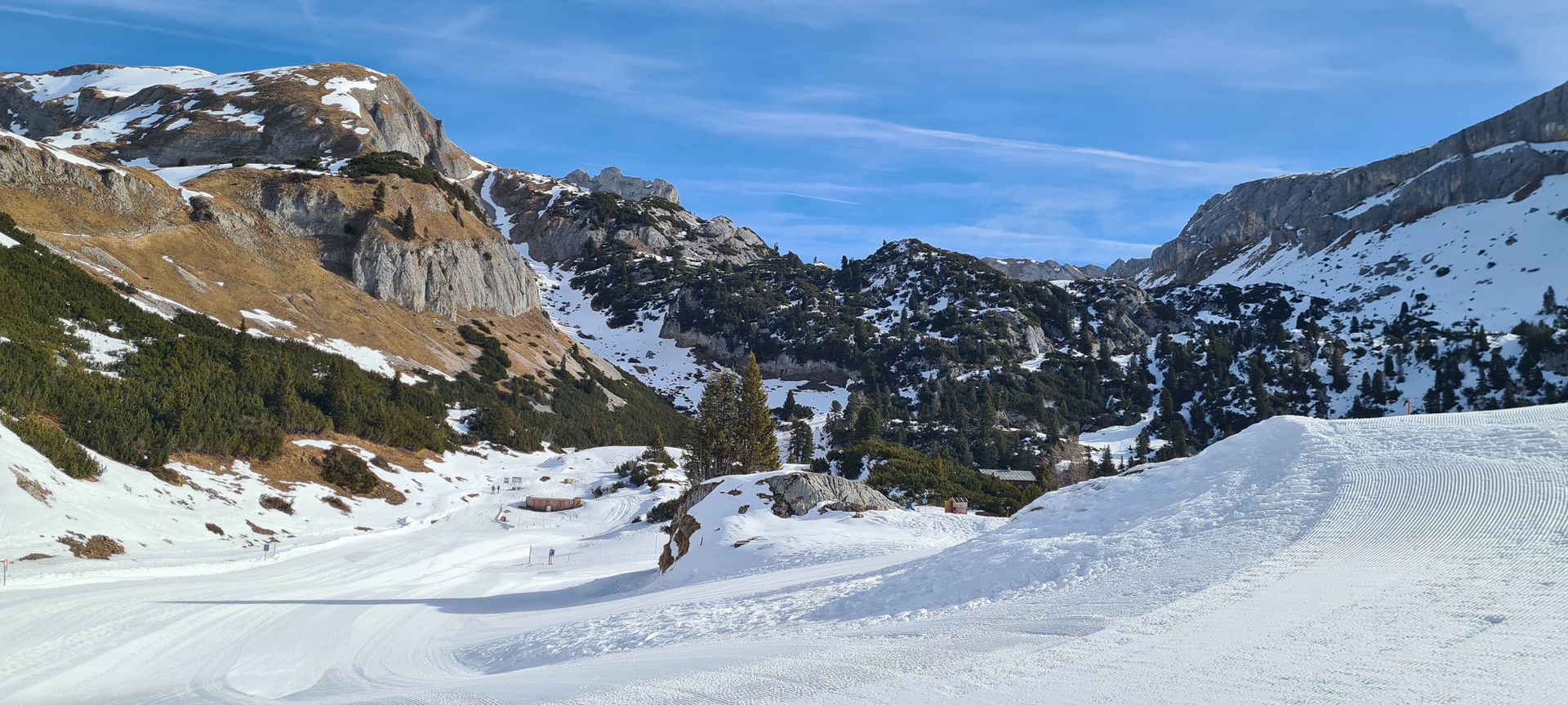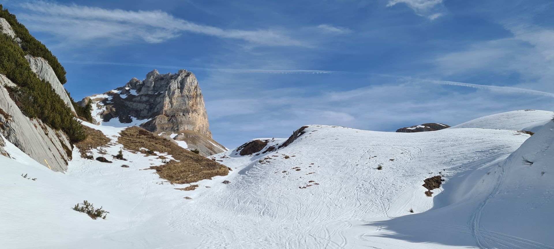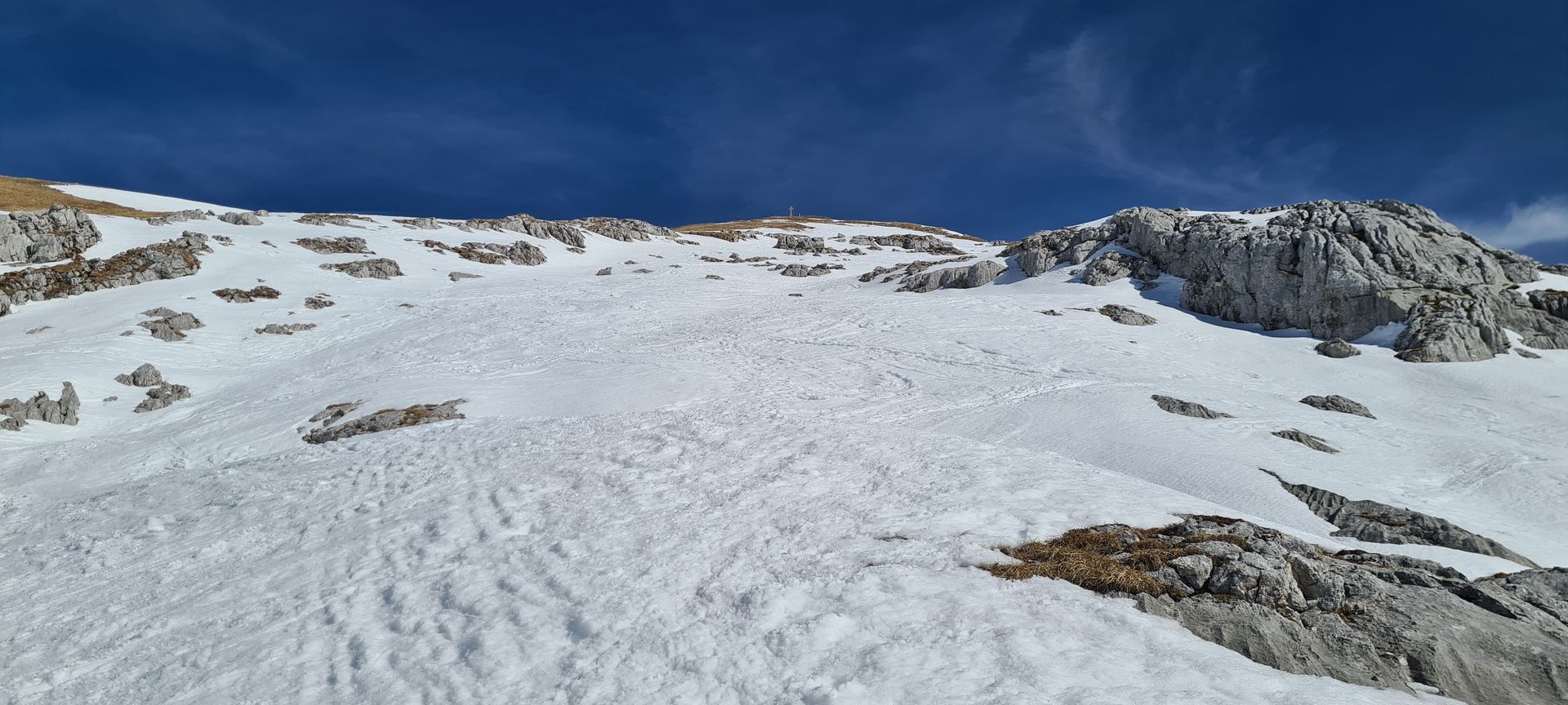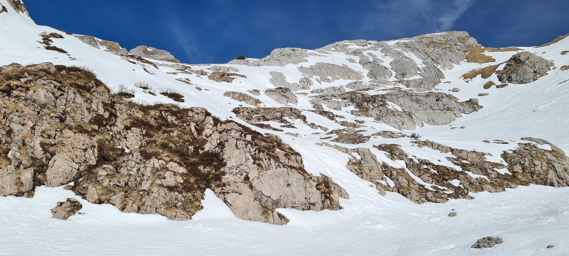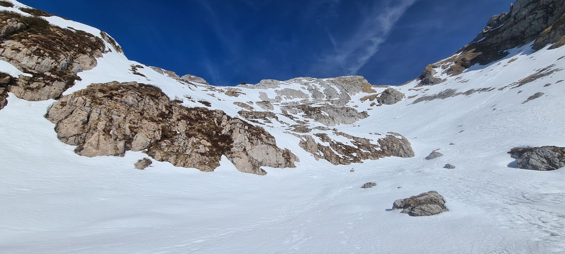 Ansonsten liegt auch hier recht wenig Schnee, Steine und Felsinseln schauen raus und können aber noch recht gut umfahren werden. Noch...